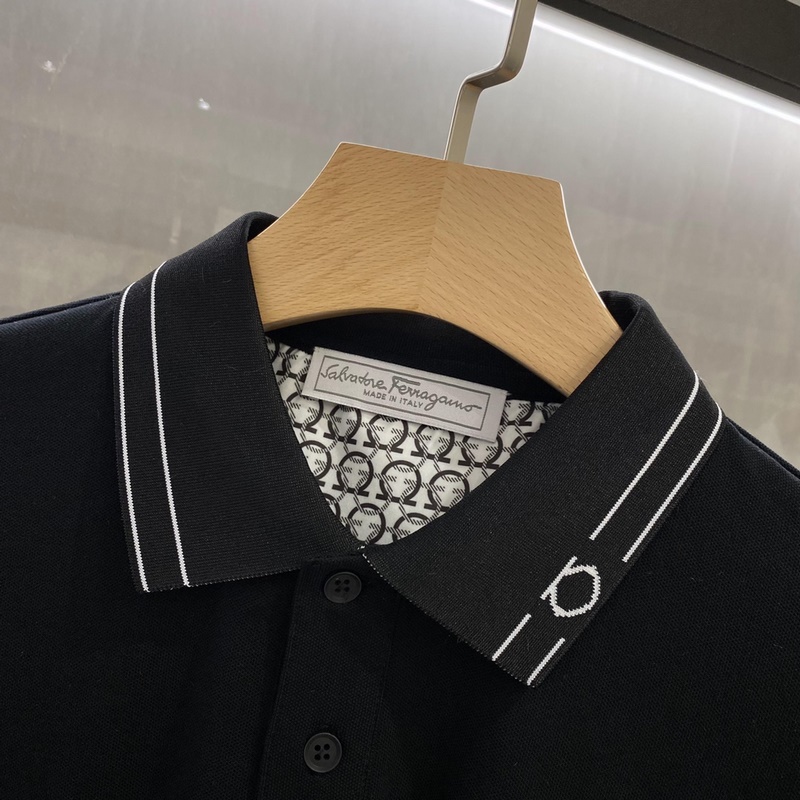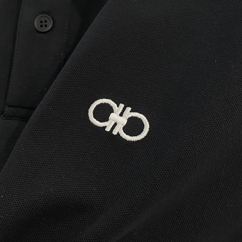 (New product) Ferragamo 23SS new spring and summer top-grade mercerized pearl cotton letter jacquard lapel short Tee, men’s classic horseshoe buckle logo embroidery business casual short-sleeved Polo shirt trading company channel rare, leading official website sales 2023 boutique short TEE rare, simple and streamlined casual polo, creating a man’s elegant business style. This Polo shirt is made of imported mercerized pearl cotton cloth, which feels smooth and comfortable, not the astringent feel of ordinary pearl cotton. The upper body has the cool enjoyment of air conditioning. The fabric is thin but not without strength, and it can be called a breathable fabric. The lapel design with letter jacquard is more fashionable and avant-garde than regular Polo shirts, and will not cause aesthetic fatigue visually. The classic horseshoe button logo embroidery on the chest, with solid and full embroidery technology, fully reveals the essence of the brand, and the logo is smooth and delicate without any roughness. Customized natural mother-of-pearl buttons are provided for embellishment, and each one has been strictly selected, and its glossiness is full. The basic three-dimensional pattern cutting design makes the upper body fashionable, capable and energetic, and will definitely enhance your temperament to multiple levels. Black/white Navy blue three-color size: M-3XL M: shoulder width 44cm-bust 100cm-length 70cm L: shoulder width 45cm-bust 104cm-length 72cm XL: shoulder width 46cm-bust 108cm-length 74cm XXL: shoulder width 47cm-bust 112cm-length 76cm 3XL: shoulder width 48cm-bust 116cm-length