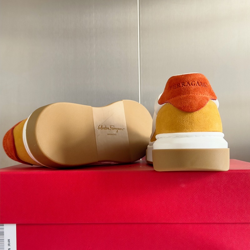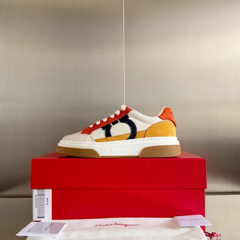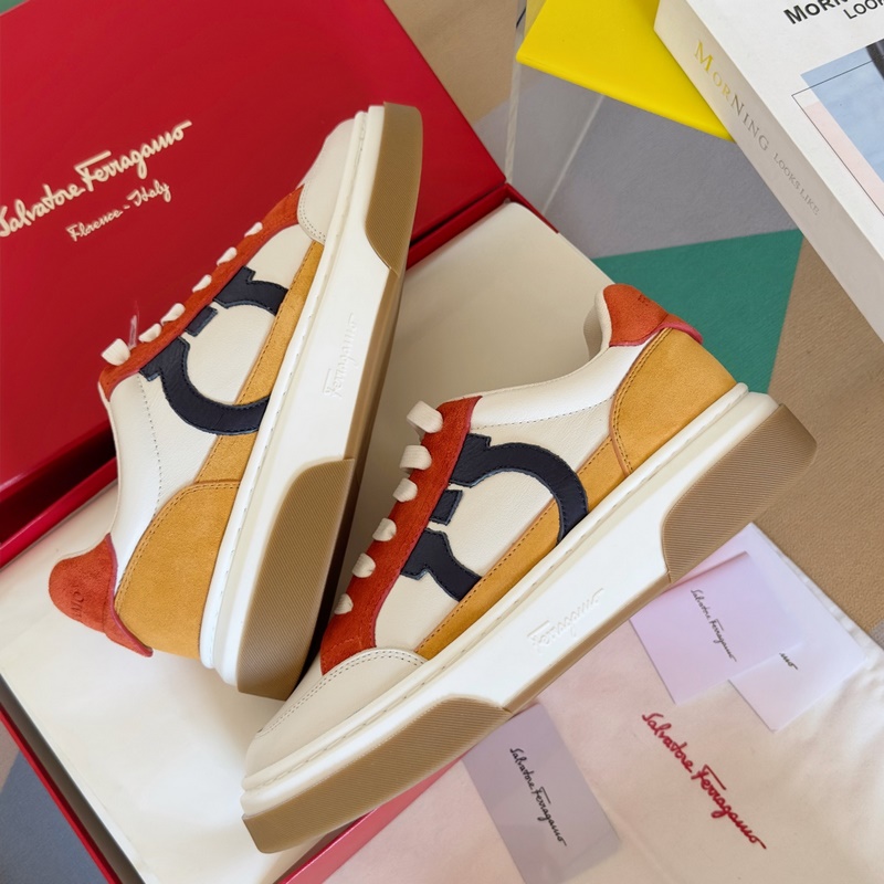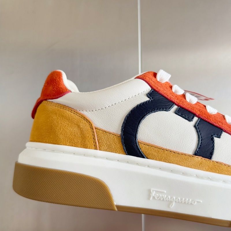 Original purchase, development and production This low-top casual shoe is made of high-tech mesh fabric and decorated with suede and leather inlays. It is inspired by the style of basketball shoes in the 1990s, and the Gancini inlays on the side add a touch of classic style. Equipped with a lightweight rubber sole with knurled edges and custom grooves