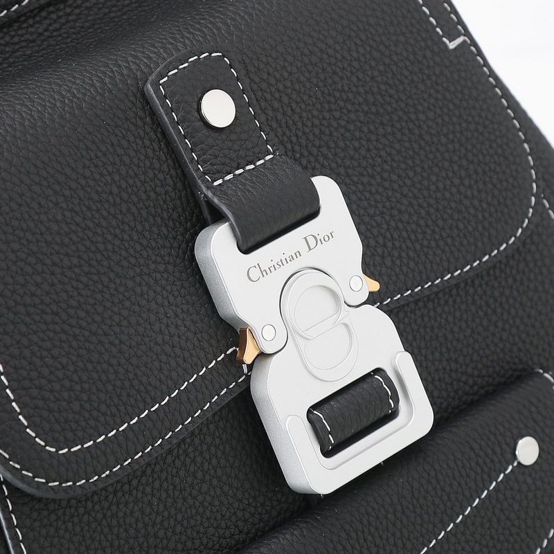 (One-shoulder version) A chic piece, the Gallop shoulder bag is a new take on the iconic saddle. Crafted in black grained calfskin leather with contrasting topstitching, it features a main compartment with a flap to store your daily essentials. Front patch pocket with saddle-shaped flap. Mini version with adjustable shoulder strap in Christian Dior jacquard for shoulder or crossbody wear.