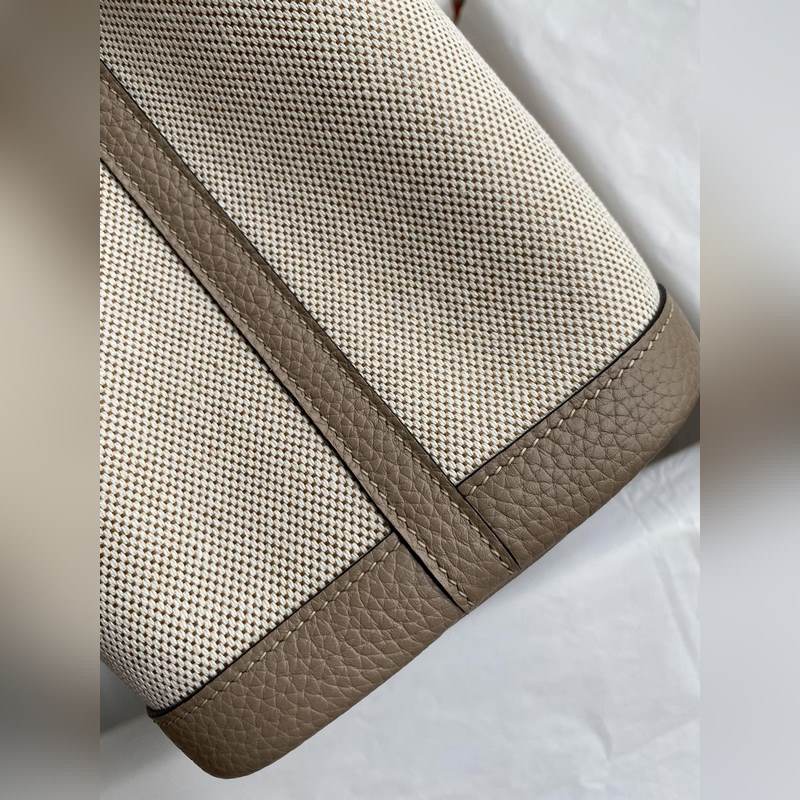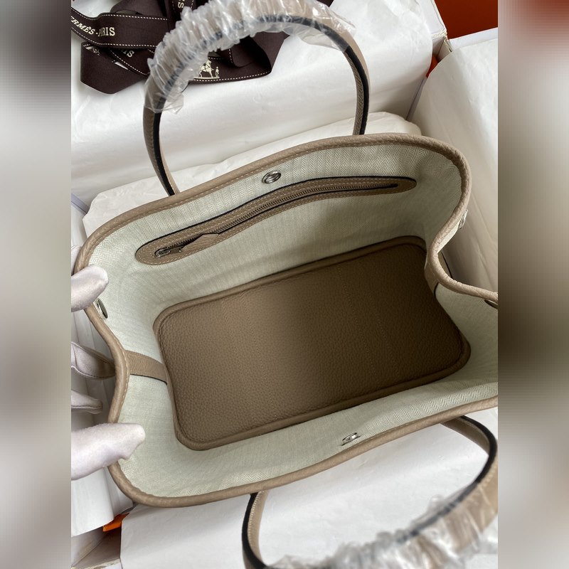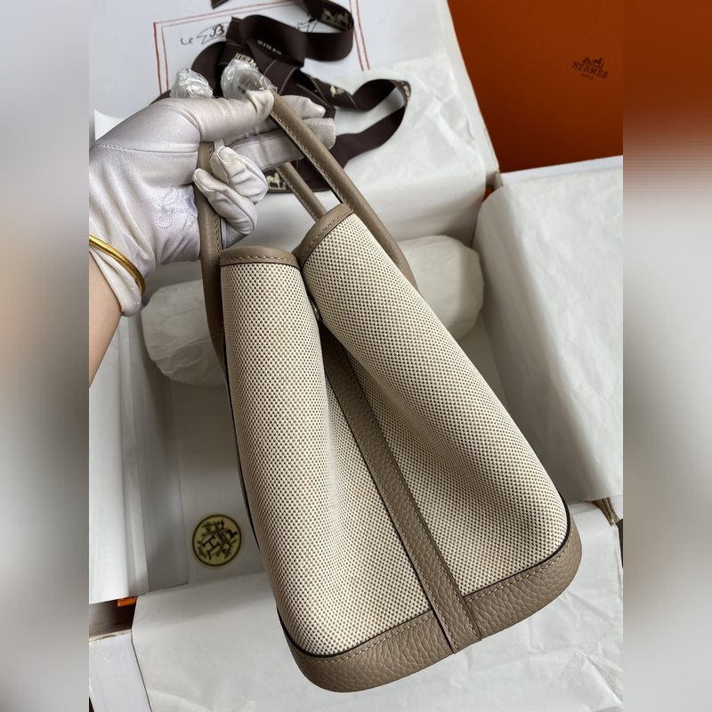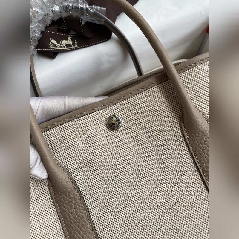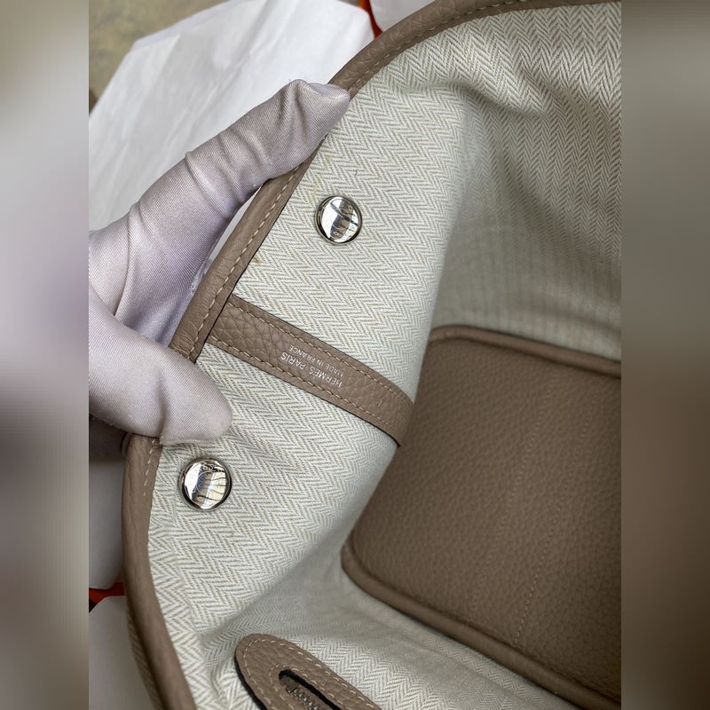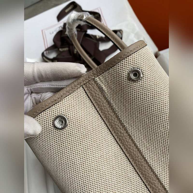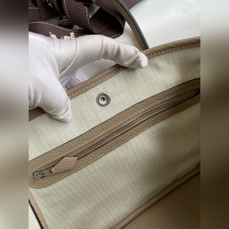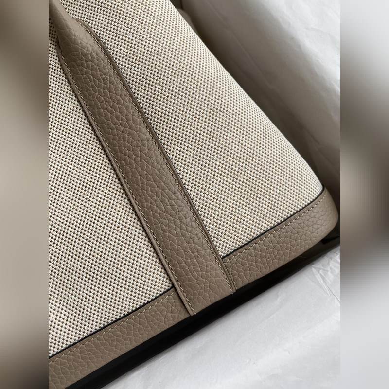In stock: Garden part 30cm imported TC leather with dense woven fabric apricot with dove grey silver buckle wax thread