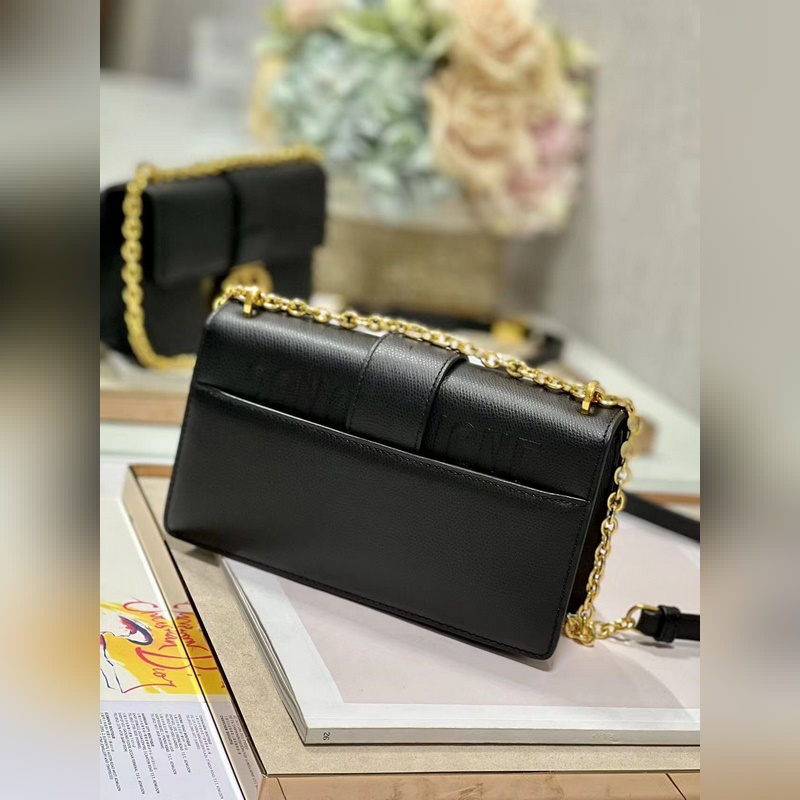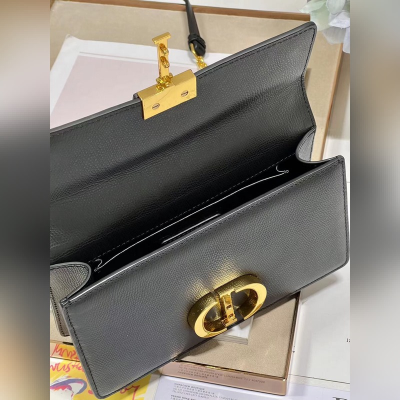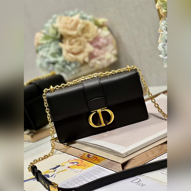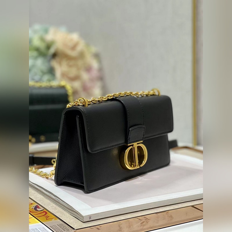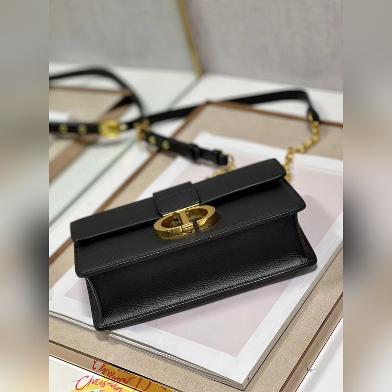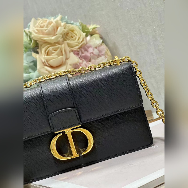 Crafted from black cowhide leather, the classic and elegant design enhances the style of the series. The flap is decorated with a metal CD buckle with a vintage gold finish, inspired by the seal of the Christian Dior perfume bottle. Other details such as the embossed 30 MONTAIGNE logo on the back highlight the neat design. With a detachable chain shoulder strap decorated with leather panels, it can be carried by hand, on the shoulder or crossbody.