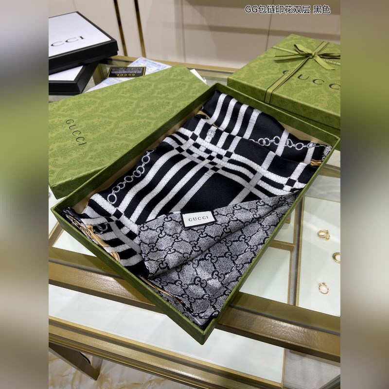 G’s exclusive customs channel goods GG bag chain print double layer. I dare not say that it is once in a thousand years to get such a heavy counter original goods. I really never thought about it. Double layer: one side is fashionable G’s horse chain elements, and the other side is GG print pattern. The color matching art shows luxury, fashion and nobility. The finished product is finely crafted. It is really a rare luxury. I don’t want to describe and comment more. This kind of authentic goods that have been robbed, those who have sold it know how popular it is. This is another new masterpiece. 100% mulberry silk, 65*180cm, beautiful.