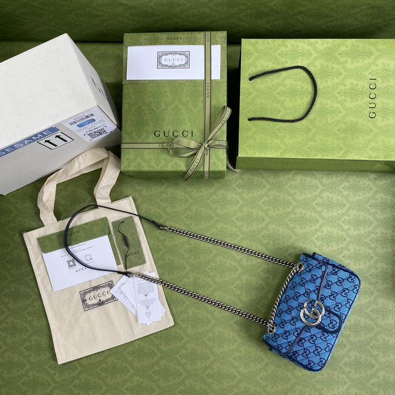 Have you collected the irresistible bag The elegant and exquisite design of the GG Marmont series has captured the hearts of many girls. It is also a must-have item for global talents. Super model number: 446744. Size: 22*13*6cm. Color: blue cloth.