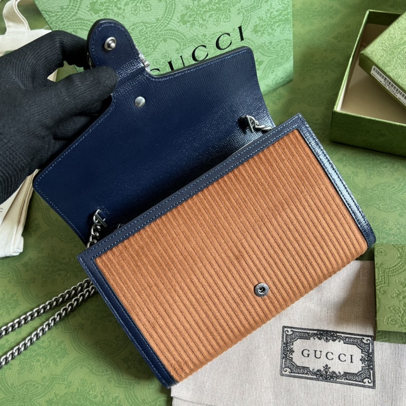 As one of the favorite handbags in the “Full set of original green box packaging” series, the Dionysus series interprets the brand’s design heritage with its unique perspective. This shoulder bag is a work launched by the brand’s creative director Alessandro Michele in his 2015 autumn and winter series. Since then, this model has been innovated every season based on the iconic accessories, integrating various new colors and materials to enrich the shape of the new series. This shoulder bag is made of a unique brown corduroy material with blue leather piping.