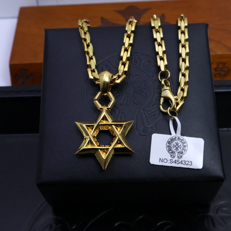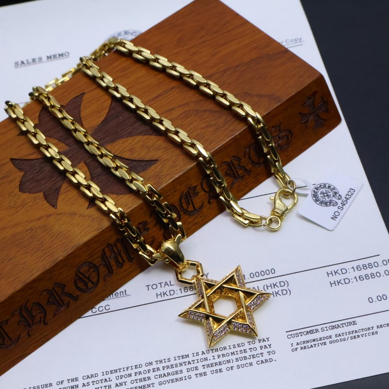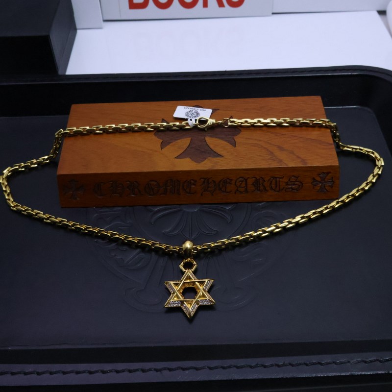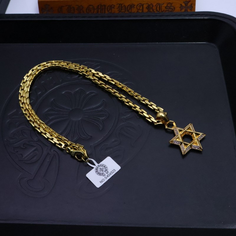 Chrome Hearts, a classic and best-selling gold necklace. The Chrome Hearts necklace is so cool. The different patterns and design styles make it unique. The cross and scout flower are the symbols of Chrome Hearts, so it is more enduring. The genuine Chrome Hearts are different from the ordinary light versions on the market. The quality is the same as the standard version. The degree of retro and old gray oxygen. ~ A must-have for fashion. Both men and women can wear it. Fashionable and rock punk Thai silver style. Retro elements. Couples’ style. Full of fashion sense. Factory direct sales. Personality and versatile. Fashionable and versatile.