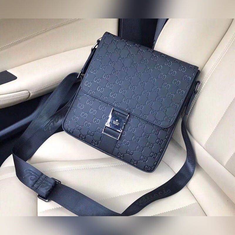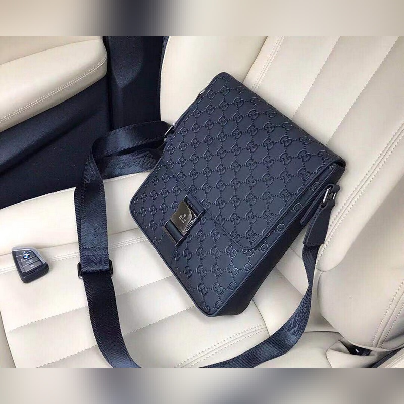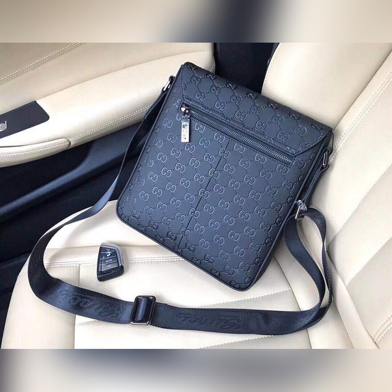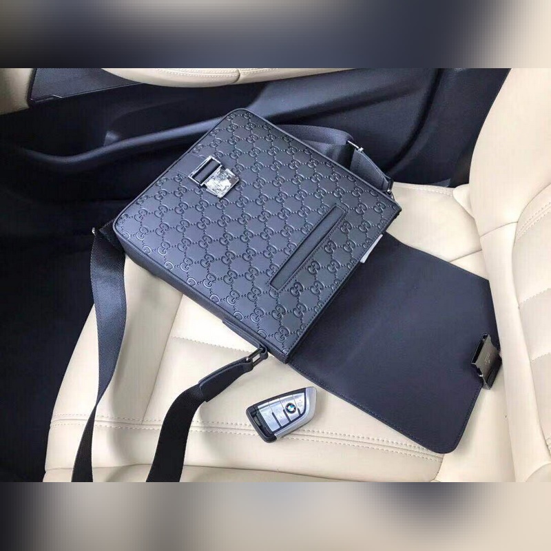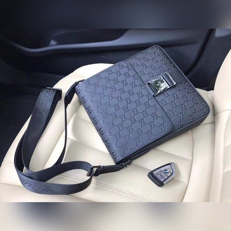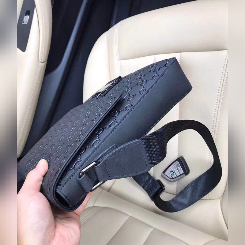 GUCCI model 0220 flap messenger bag size 25x27x6cm color black high-end quality material imported frosted leather embossed G trendy men’s must-have messenger bag special order hardware