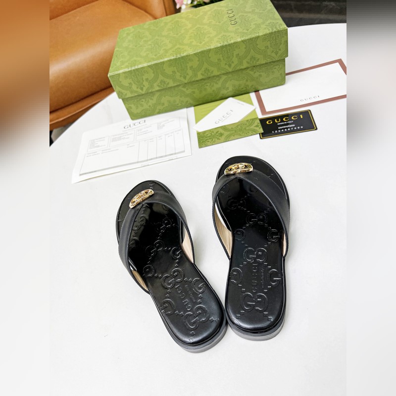Gucci’s new 2023 flip-flops. The interlocking G logo is a classic symbol of the brand, derived from the initials of the brand’s founder, Guccio Gucci, and has appeared in various forms and styles since then. The double G intertwined pattern. 35-43
