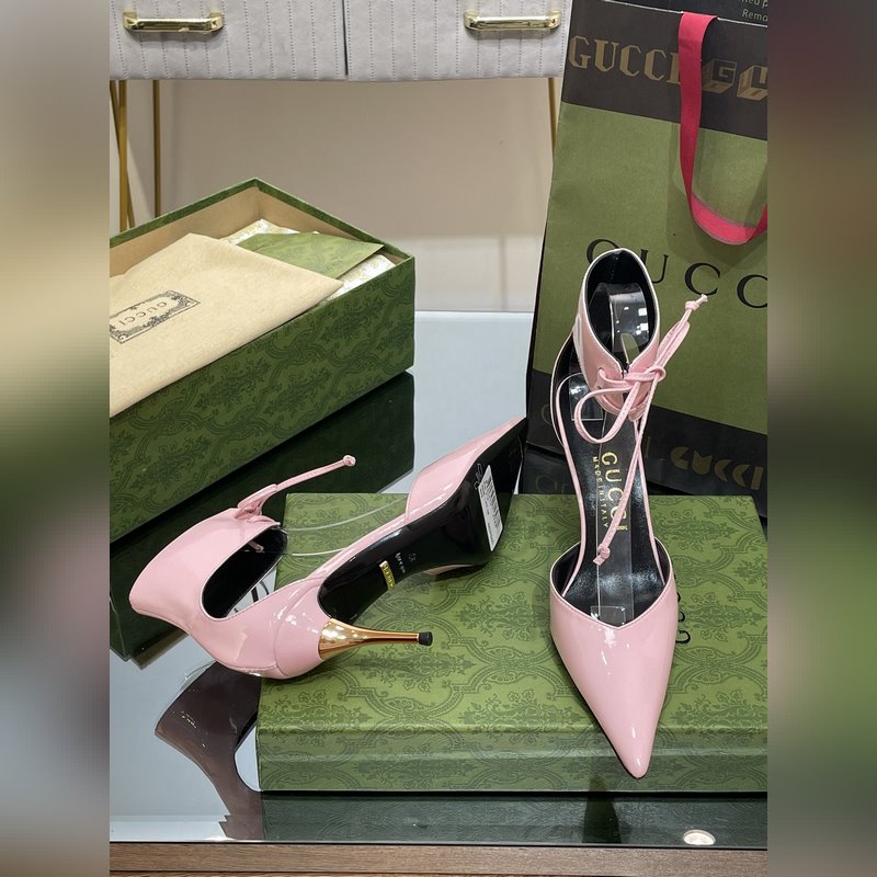 Gucci high heels, purchasing-level 2024 new metal heel ankle strap shoes