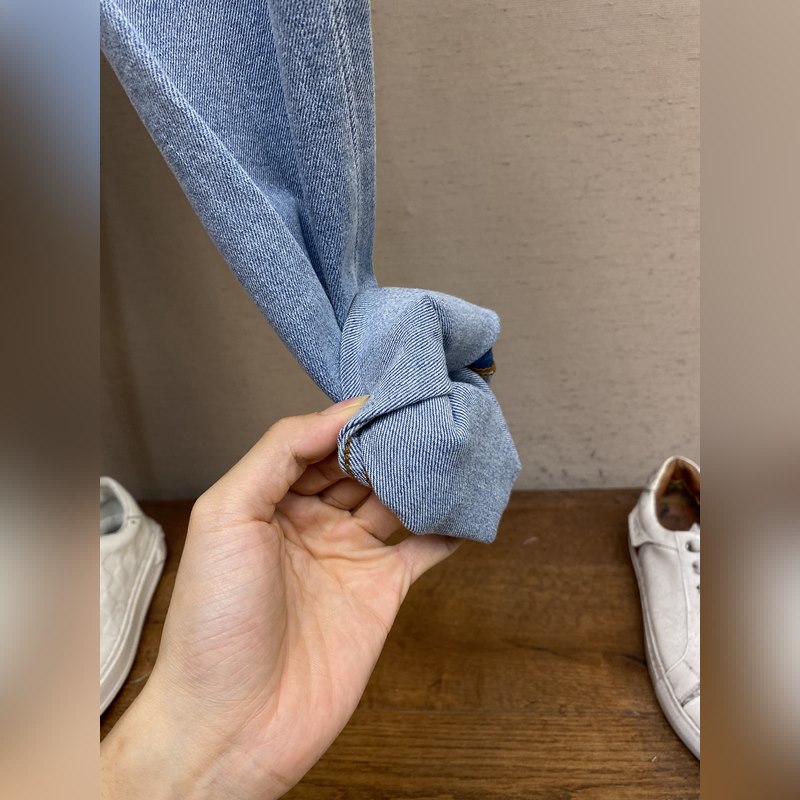 I have to give a thumbs up to its practicality. The version/detail design is impeccable. Anyone who wears it will look good. This pair of jeans can really modify the leg shape more than you think. The overall design is comfortable. The size of the trouser legs is just right, which makes you look thin and straight. You can easily wear long legs that fill the screen, lengthen the proportions and fully open the aura