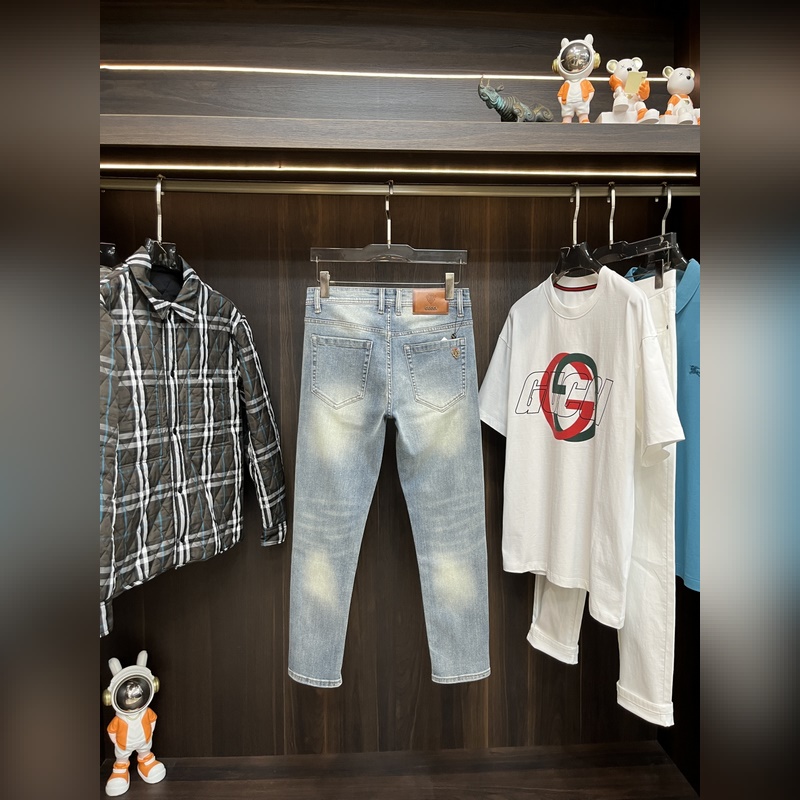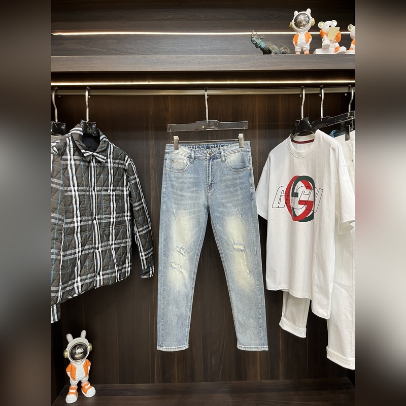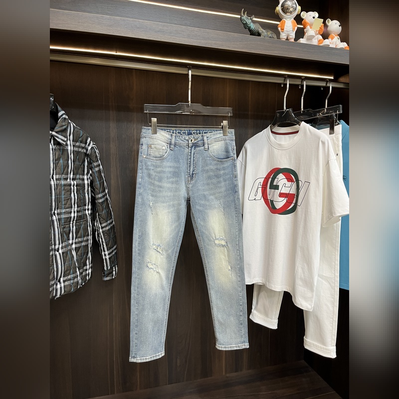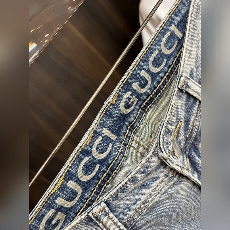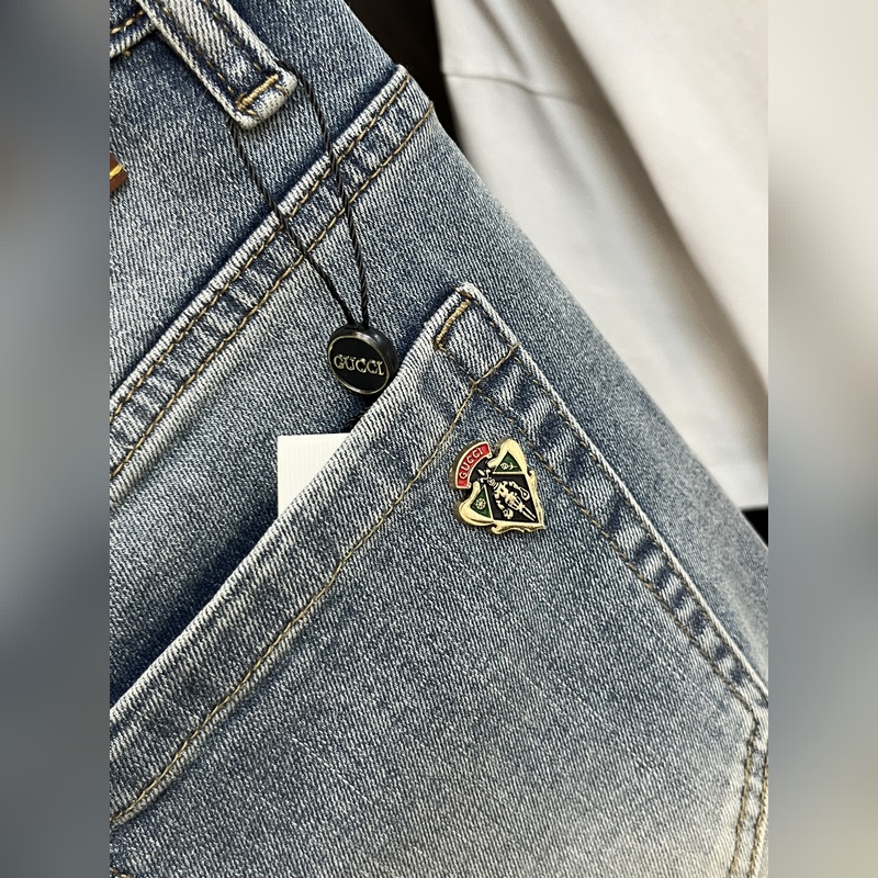 Gucci 2025 hot jeans Fashion casual denim trousers, pure cotton small straight leg classic denim version Size: 29-38