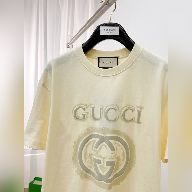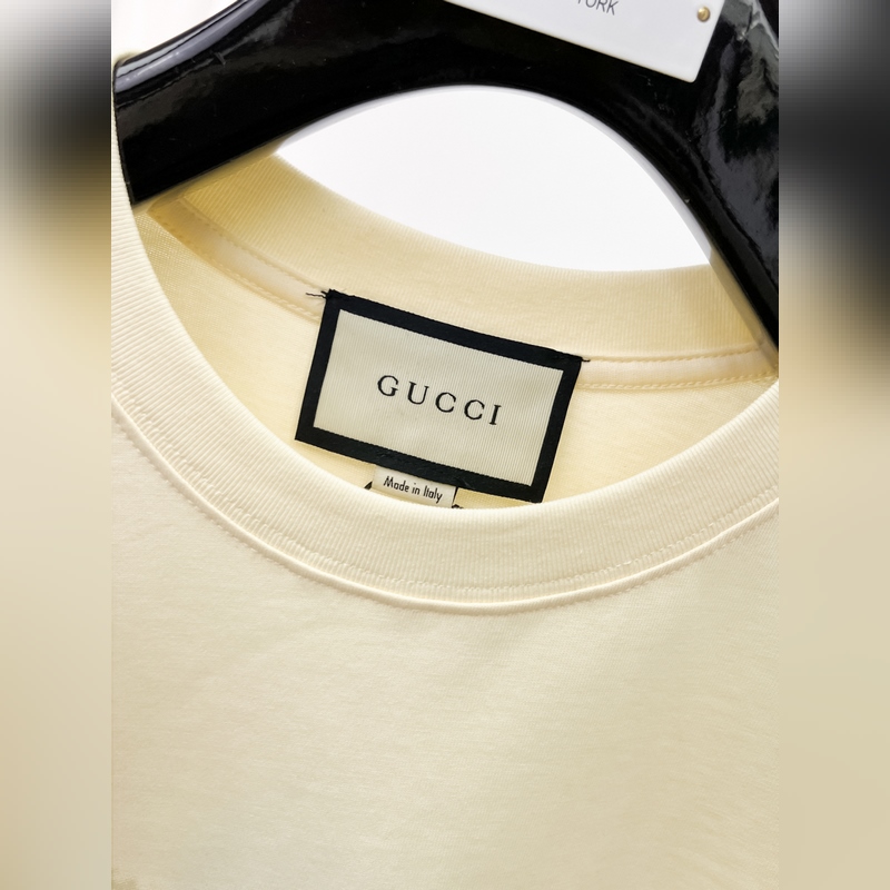 Gucci is the first choice for single wear and bottoming. High-end fabrics. 240 grams of pure cotton. 2025 spring and summer new short sleeves. Fashionable classic round neck short sleeves. Fashionable single product design, more fashionable and comfortable, high standard customization, very stylish on the body, classic brand LOGO pattern on the chest. Customer-supplied accessories, customer-supplied imported high-end fabrics. The texture is very delicate, the details are exquisitely crafted, and it is a highly plastic single product that can be matched with any fashion. The version is super good. A must-have item for trendy men. Size: XS-L