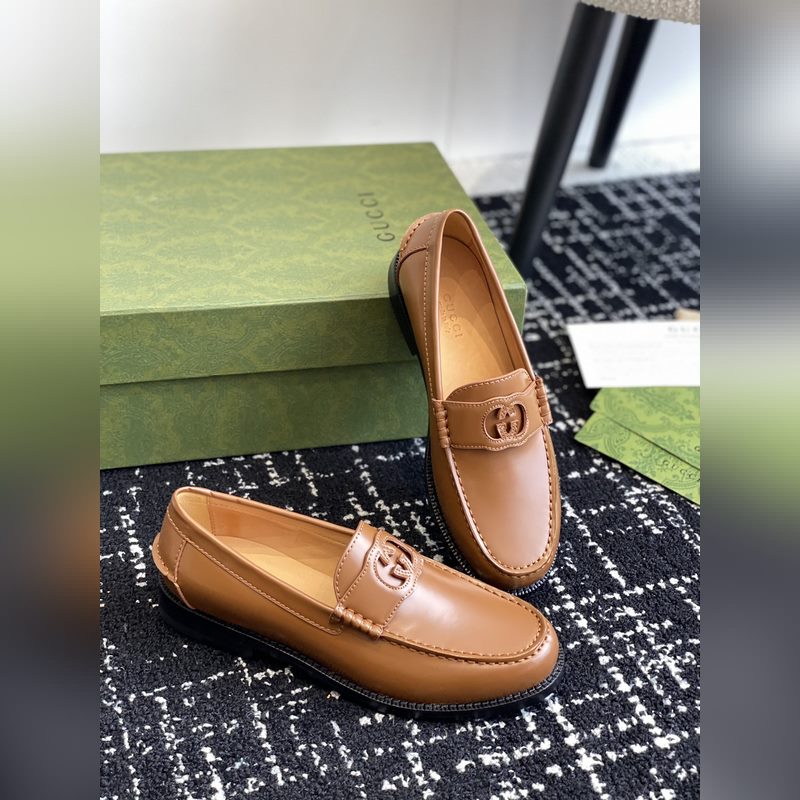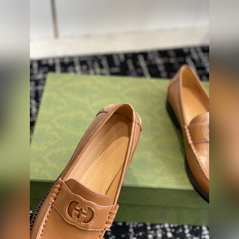 Gucci 23ss loafers High-end version recommendation The interlocking double G is reinterpreted as a hollow detail on this leather loafer