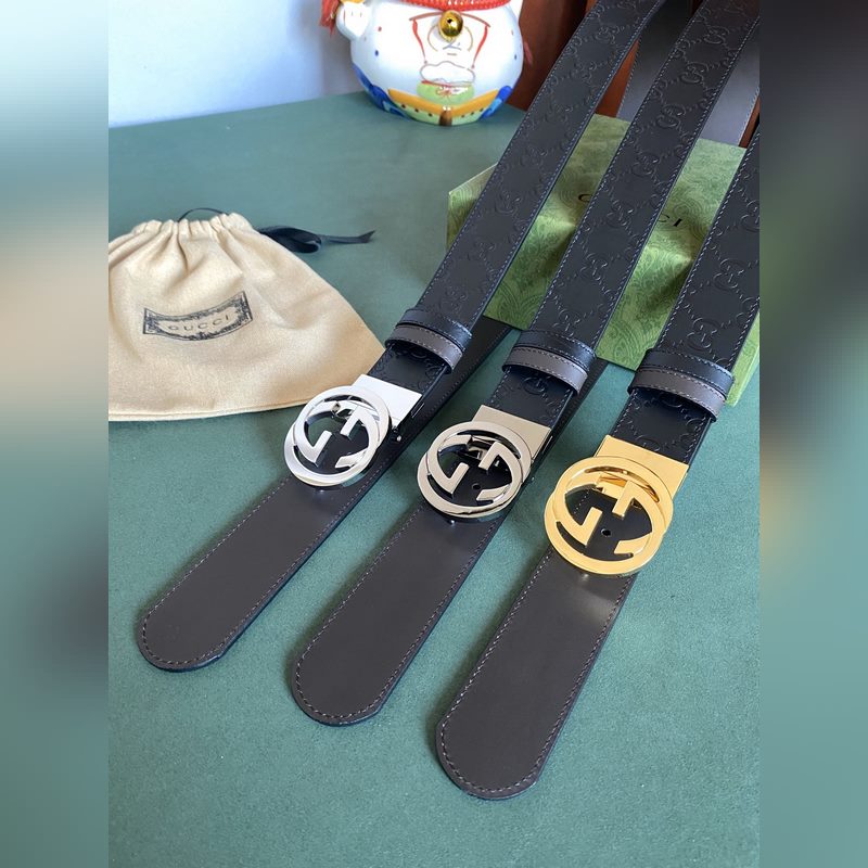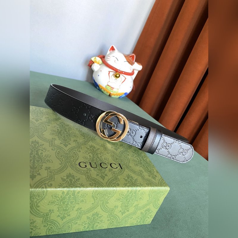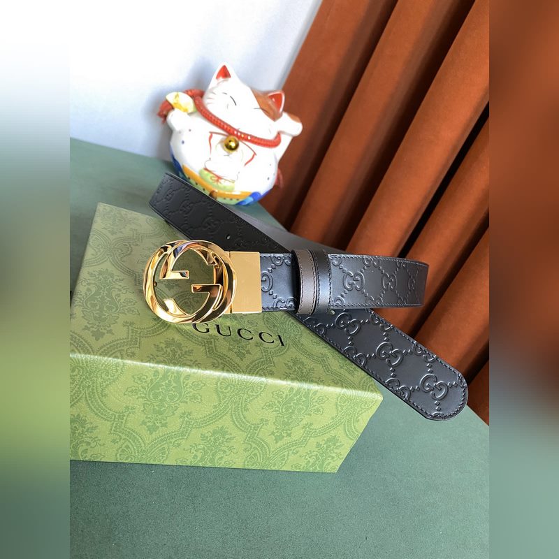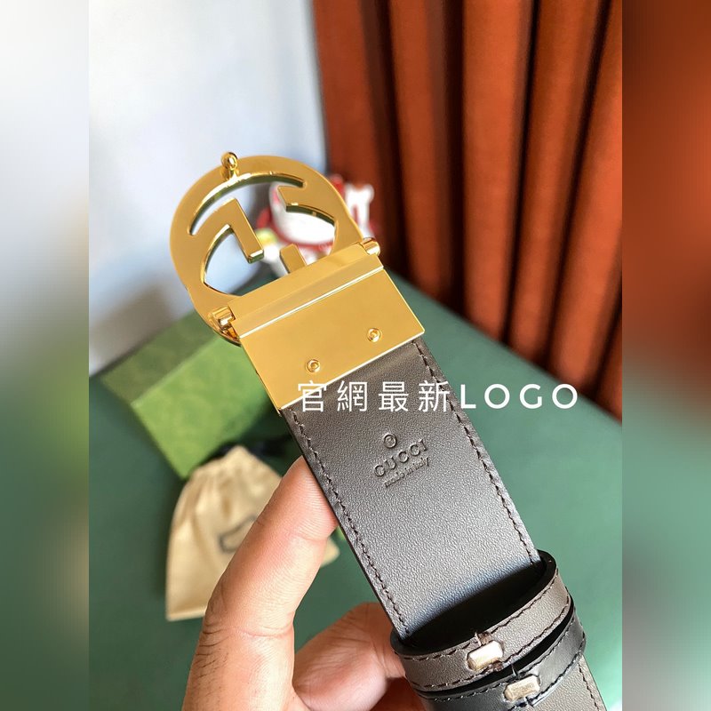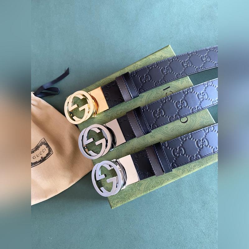 GUCCI 3,7 wide double-sided belt, one side is Gucci Signature leather, the other side is solid leather. With interlocking double G buckle