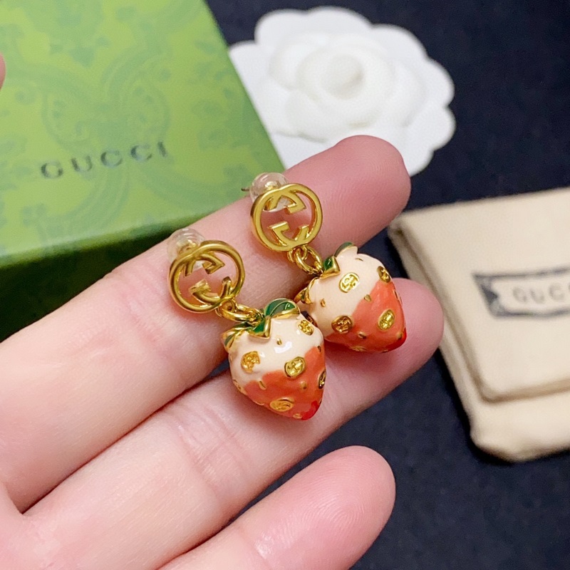 Real shot of Gucci high-end spot three-dimensional strawberry Gucci double G earrings, full of three-dimensional sense of high-end quality, the same material as the counter, real brass, ion plating, exclusive real shot, exquisite workmanship, heavy version, super fairy and beautiful one, super careful workmanship without loopholes, comparable to zp