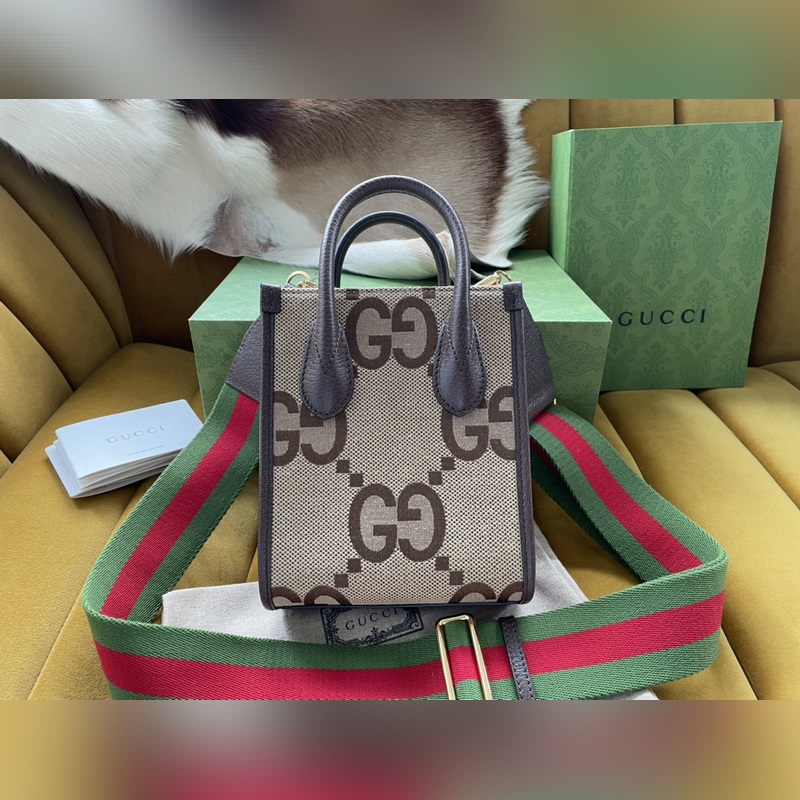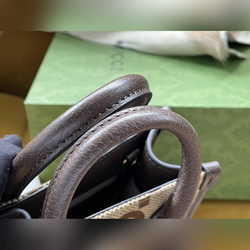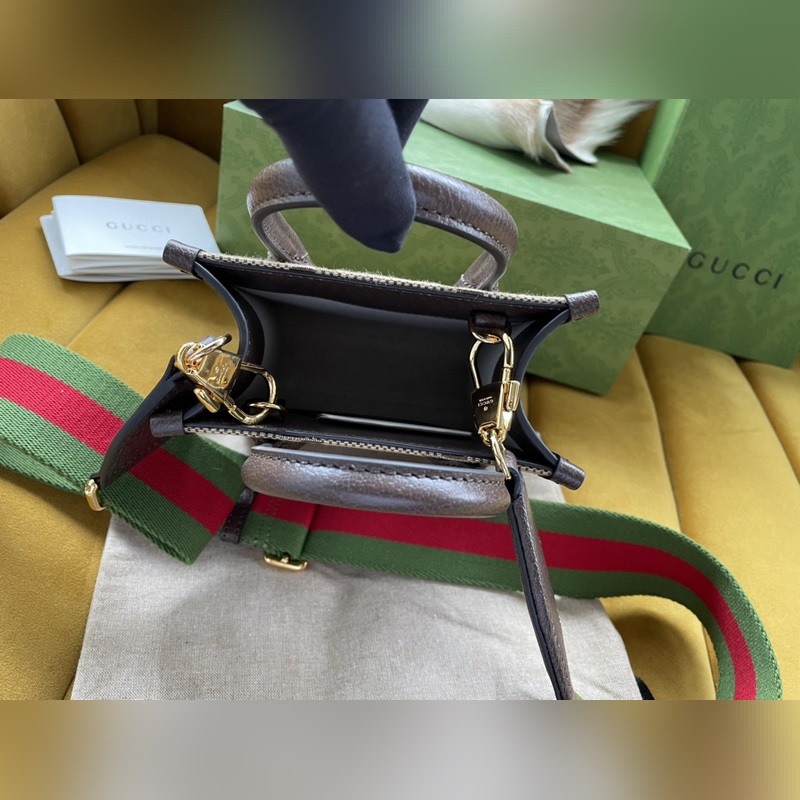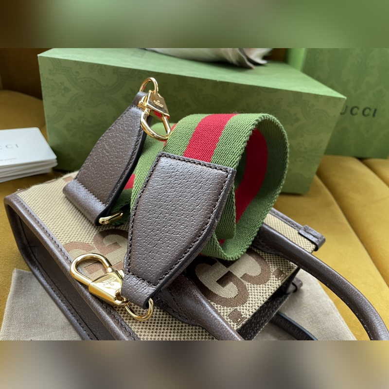 GUCCI Style No.: 699406 2022 The interlocking double G has always been one of the brand’s iconic elements. The well-known symbol is matched with leather details. Style No.: 699406 PVC with canvas. Make this tote bag the focus Size: 16/20/7cm With original packaging