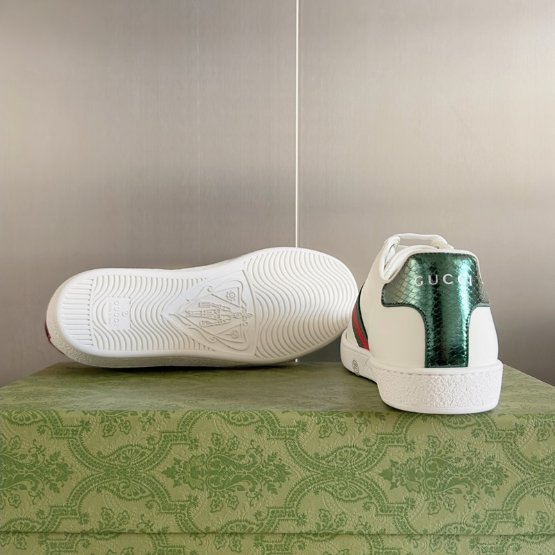 Original purchase, development and production This brand’s classic low-top sneakers interweave golden embroidered bees with red and green webbing. The bee is a classic element of the brand, and it debuted in the Gucci ready-to-wear series in the 1970s