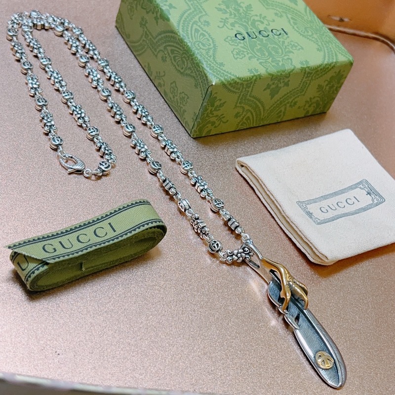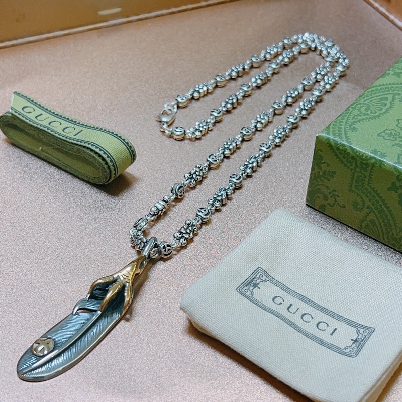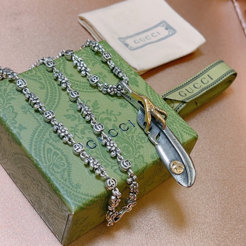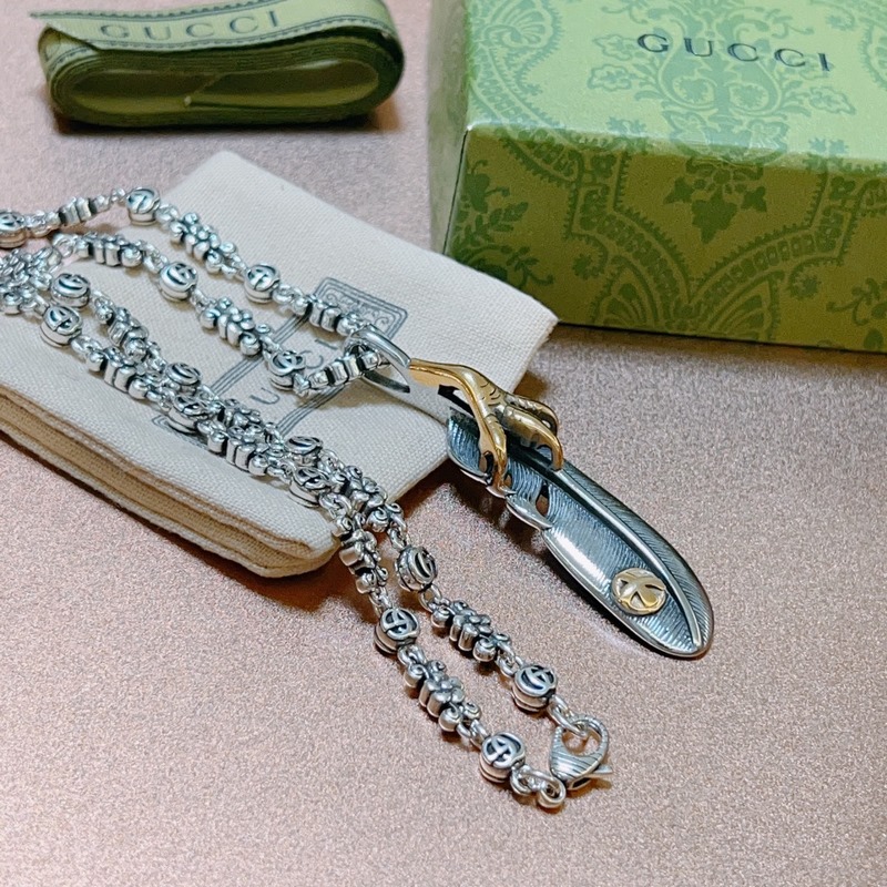 No explosion, no success. New product launch. The latest Gucci necklace with a higher chain grade. The same style as the stars. Anger Forest series double G Takahashi feather retro pattern necklace.