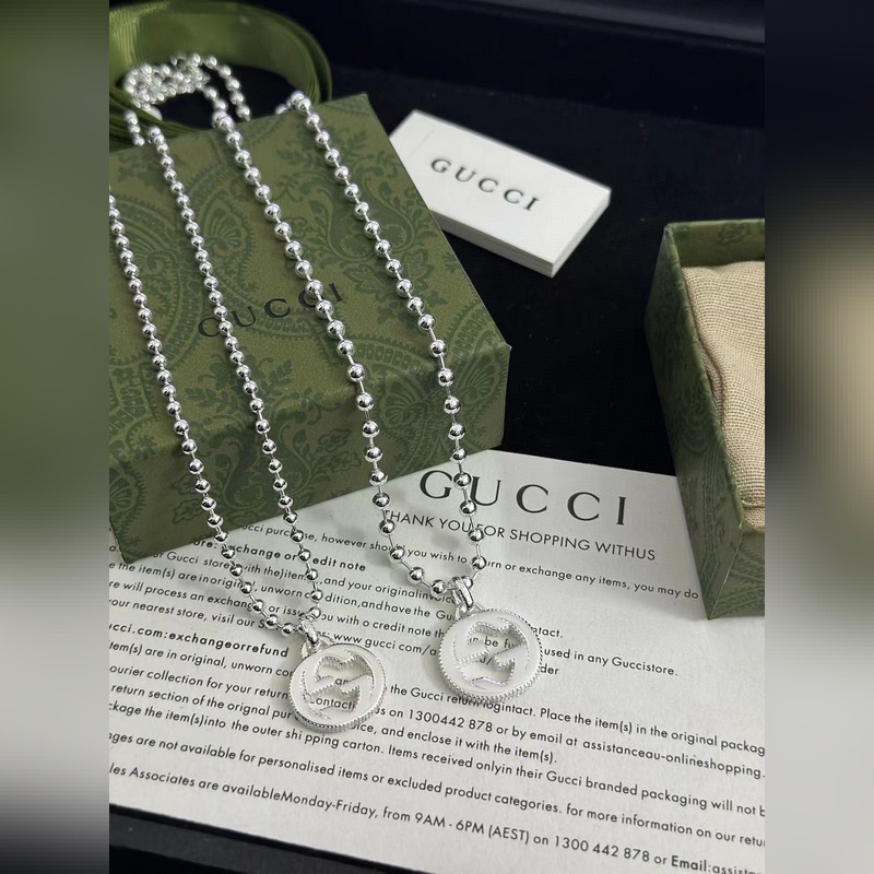 The latest Gucci necklace has a higher grade chain. The same style as the stars. Anger Forest series double Gucci necklace