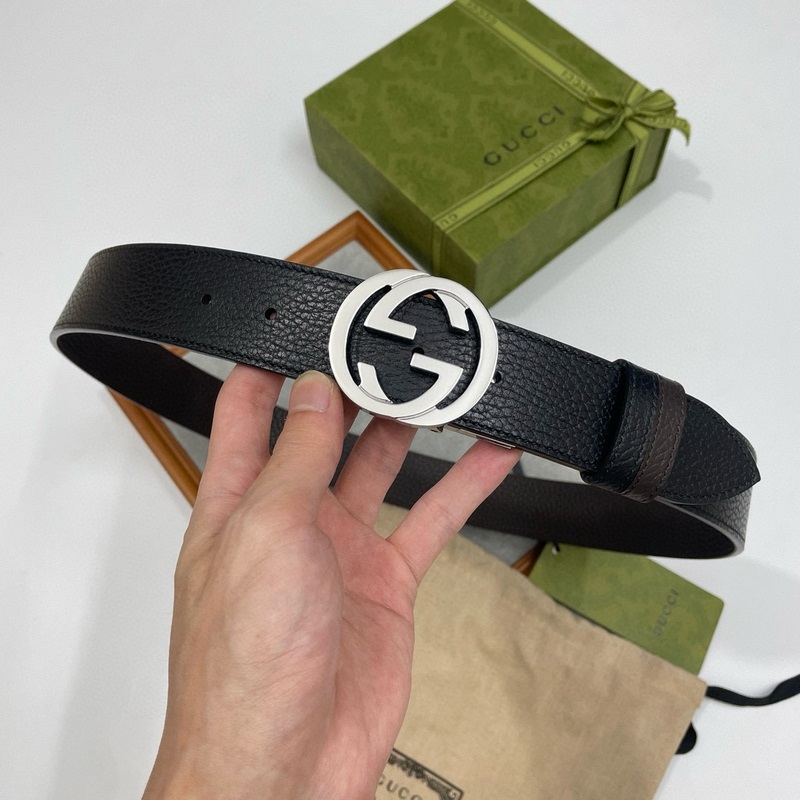 Gucci Gucci official website classic authentic specifications 3.8cm original quality first layer calfskin embossed imported first layer bottom double G polished rotating bright buckle