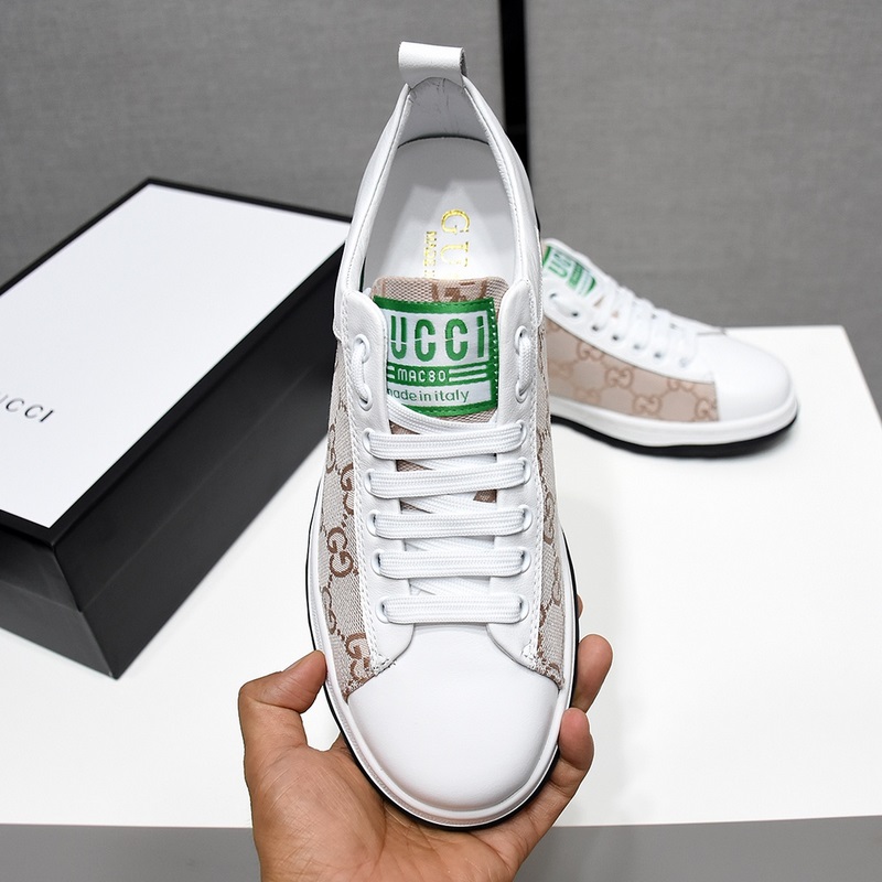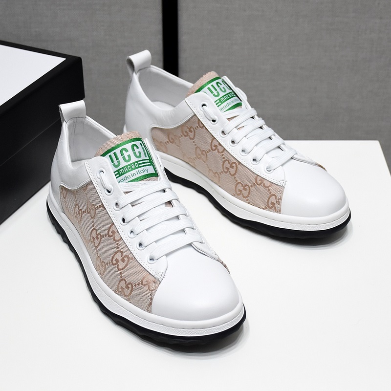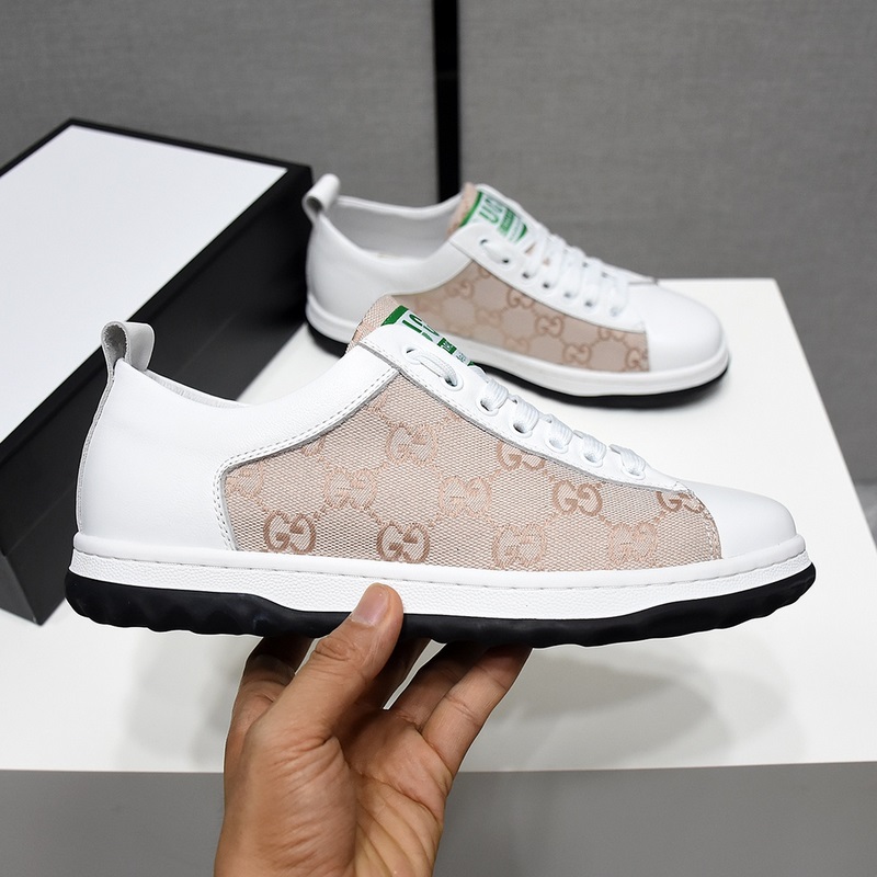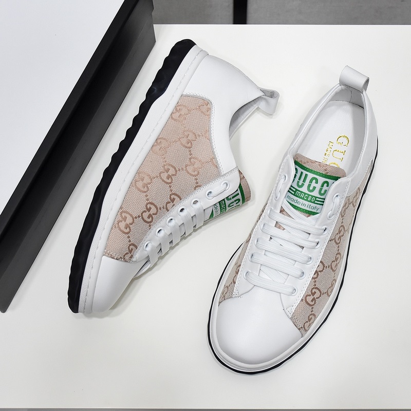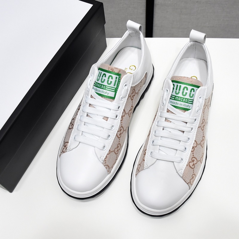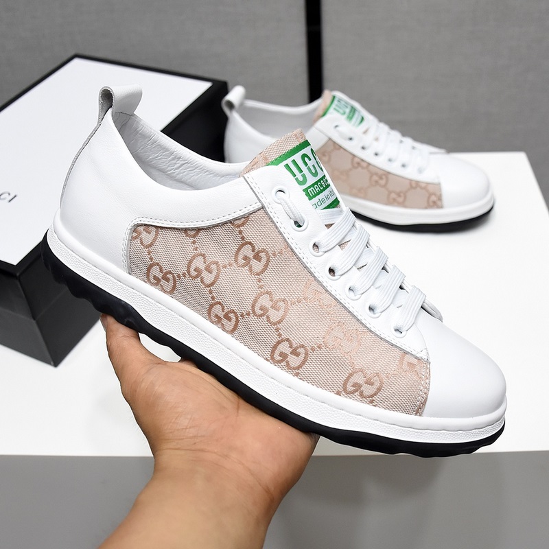 GUCCI The upper is made of top-grain cowhide with logo fabric, top-grain pigskin insole, fine cloth lining, and rubber outsole. Men’s size 38-44 (choose according to your usual size).