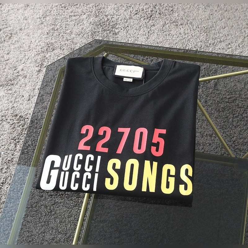 Unisex ins fashion short sleeve shirt, knitted cotton T-shirt shows the trendy style. Decorated with Gucci mirror effect print