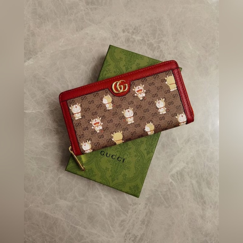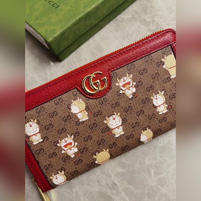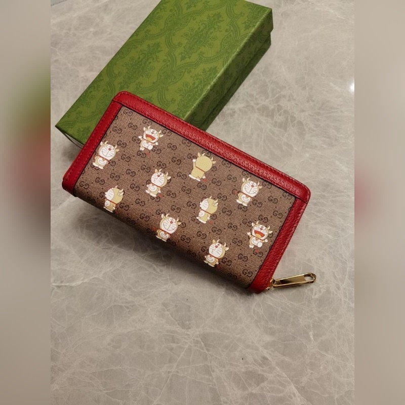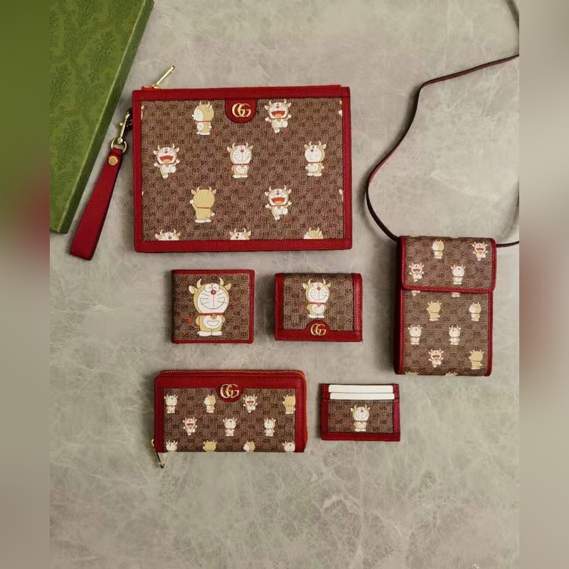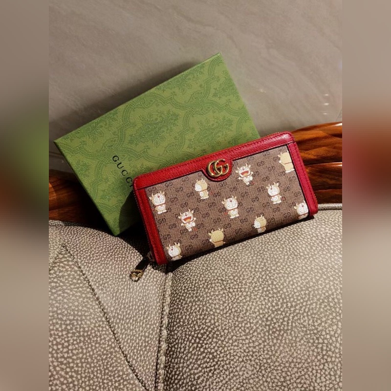 GUCCI’s latest original product Doraemon x Gucci joint series ~ zipper wallet with PVC high-grade fabric printed with “Big Fat Man with Horns” Doraemon’s various cute expressions paired with original factory pig-grained cowhide, exquisite and fashionable, Model: 654540, Size: 19x10x2.5cm