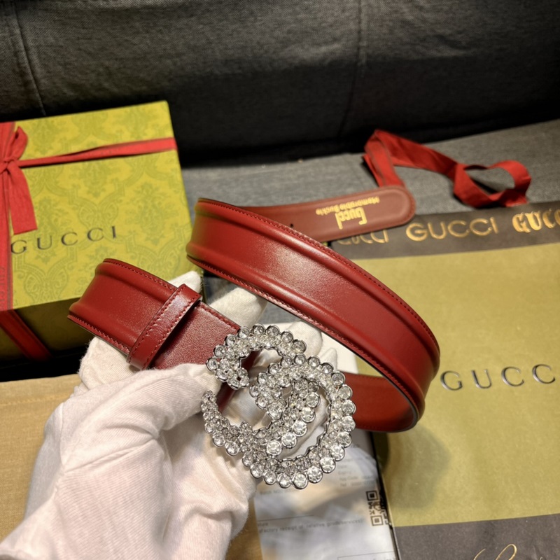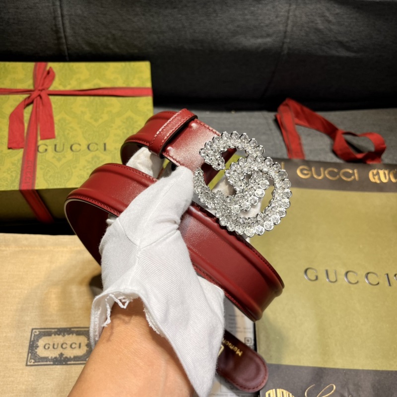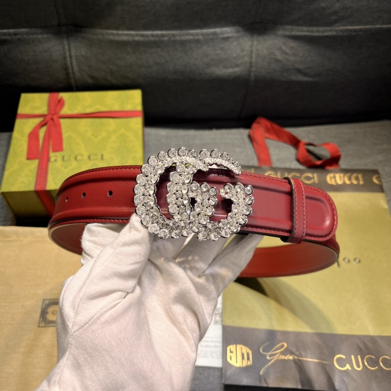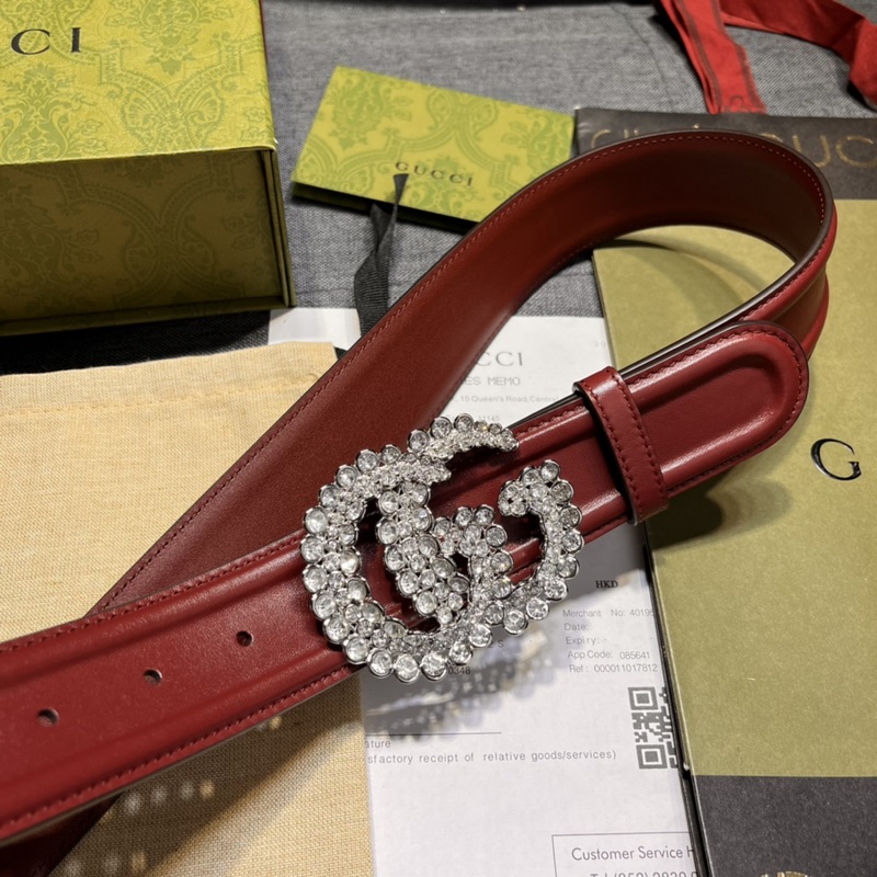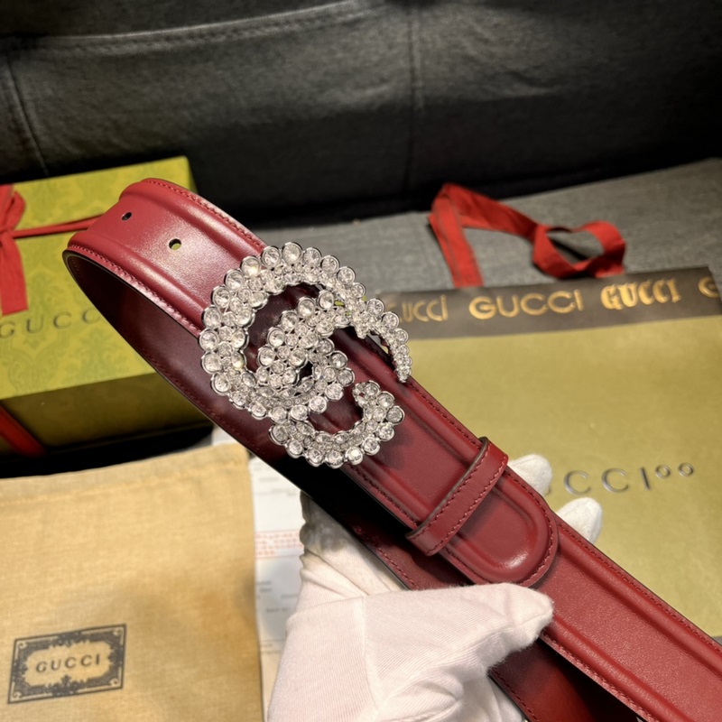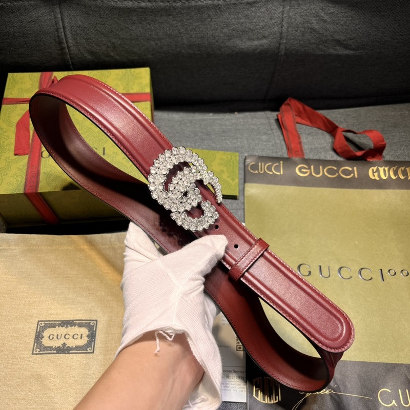 Gucci, width 4.0cm, new model As the iconic symbol of the Gucci series, the classic double G rhinestone buckle logo is ingeniously presented on this belt, and the exquisite hardware details show the gorgeous atmosphere. Imported leather combined with ridge shape design adds a unique sense of fashion to this classic item