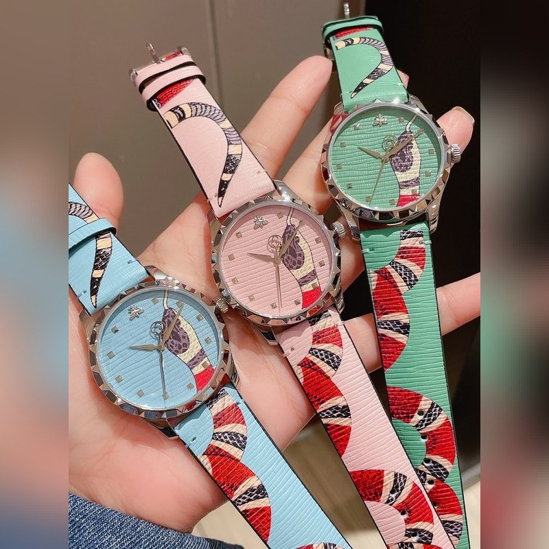 is still the brand’s infinite source of inspiration, providing a wealth of animal and plant patterns for the entire series. The king snake pattern is the brand’s unique design logo, wrapped around the watch belt design and extending to the strap, 38mm polished stainless steel dial, with metal scale, snap-on bottom cover, with bee carving, king snake pattern lizard pattern cowhide strap, Japanese quartz movement, sapphire mirror, life waterproof, really value for money