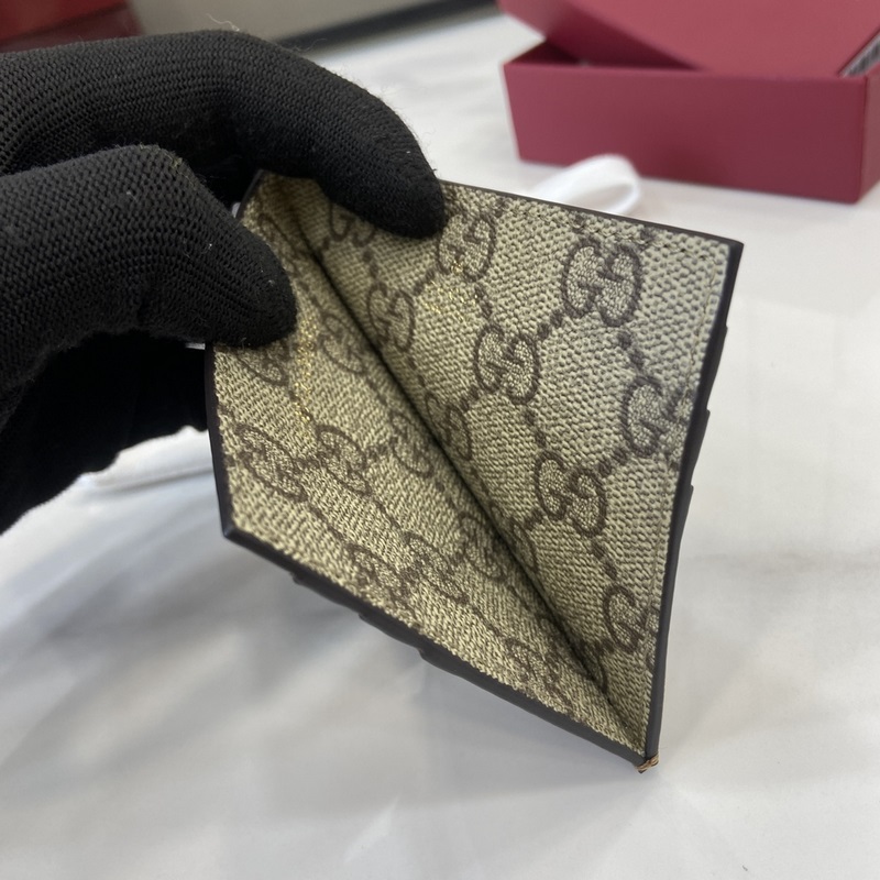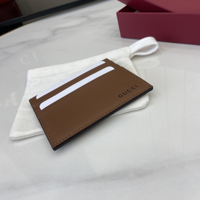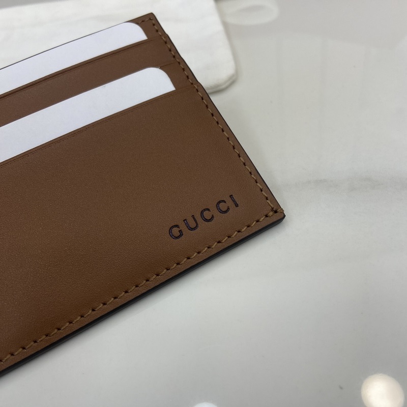 NEW The GG Emblem collection reinterprets the iconic motif with a creative design and innovative functionality, designed to be treasured for years to come. Crafted in brown glossy leather, this card holder features the new GG monogram fabric on the interior, a new interpretation of the accessories range. Gucci embossed on the front and multiple compartments inside.