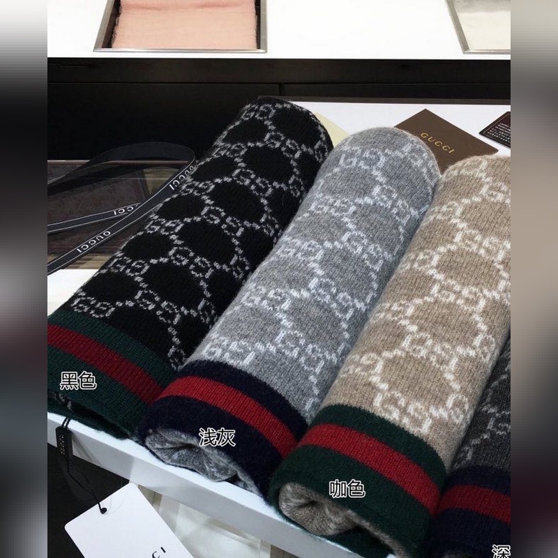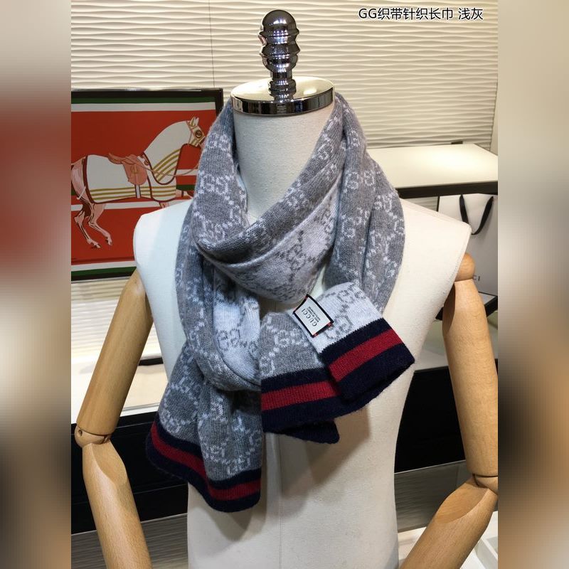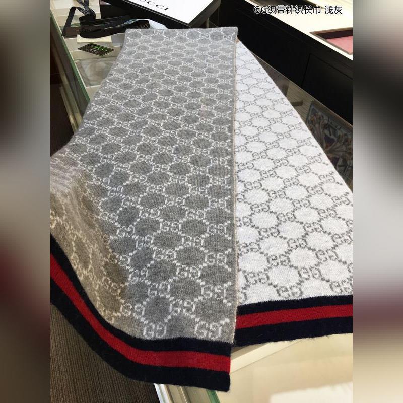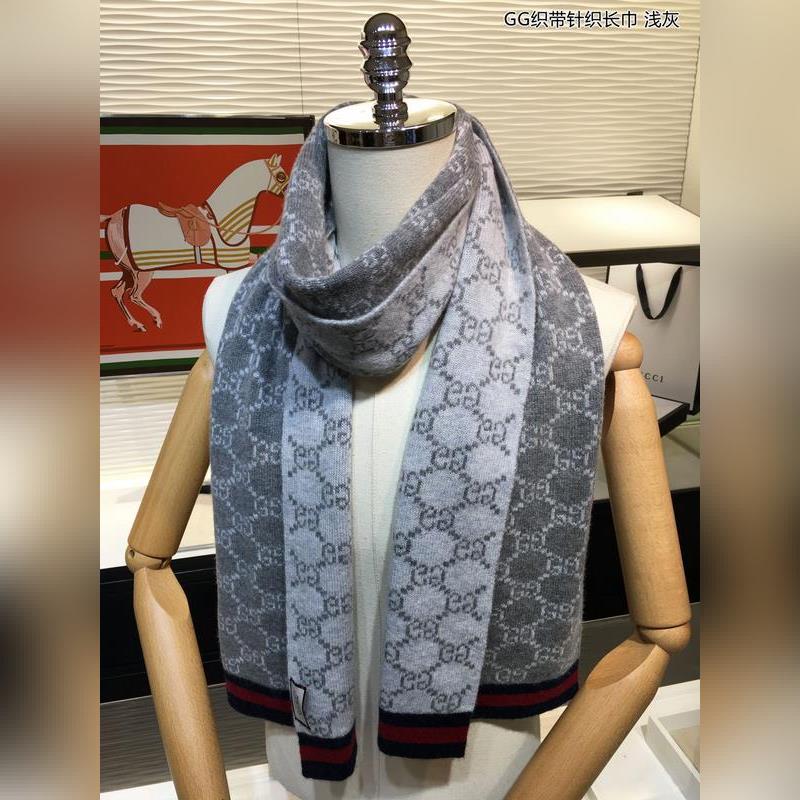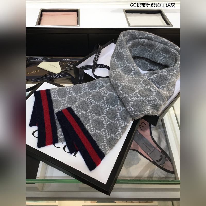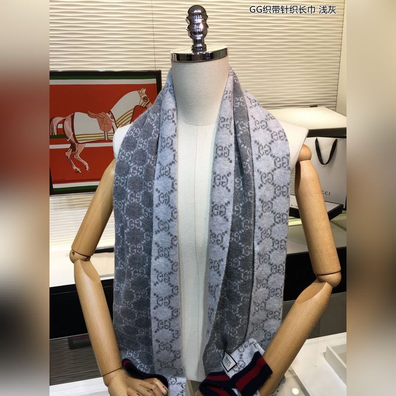 GUCCI GG Ribbon Knitted Long Scarf 100% Cashmere
