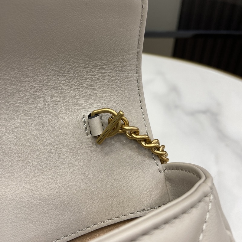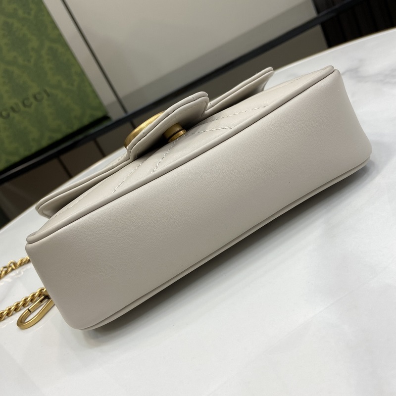 New GG Marmont mini bag in original leather. This mini bag is made of light grey quilted V-shaped leather and features antique gold-tone hardware with the iconic Double G logo for a touch of colour. The keychain can be used to attach this piece to other bags, making the design even more attractive. Light grey quilted V-shaped leather, gold-tone hardware, suede-textured microfiber lining, comes with a keychain that can be attached to the bag separately, Double G, chain shoulder strap (60 cm high), weight: approx. 0.35 kg.