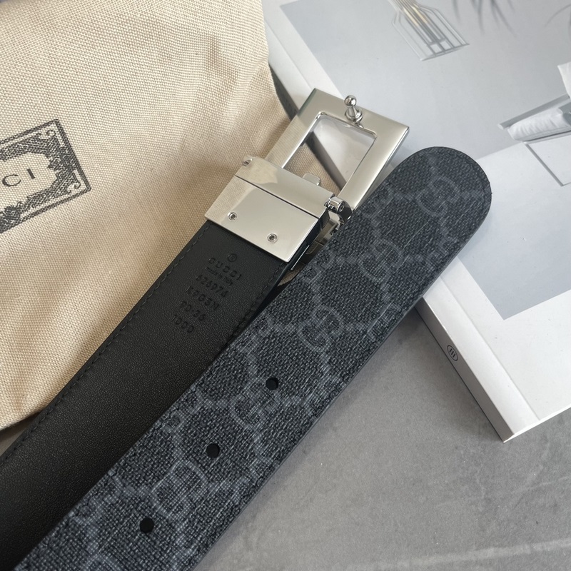 Gucci’s latest black GG Supreme canvas and black leather can be used on both sides. Width 3.5CM Square G buckle