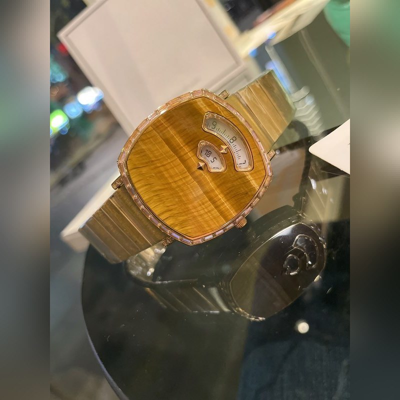 Decorated with artificial coral stones in soft tones, it highlights the noble and elegant atmosphere. Artificial agate stones interpret the new Grip series watch shape in the Epilogue series. The gemstone dial and the 44 step-cut diamonds inlaid are shining; this watch combines the timeless charm and extraordinary fashion style to create a unique design. Create a smooth and modern appearance, adding a luxurious atmosphere to the watch. With three windows showing hours, minutes and date respectively. With surprise functions, it captures every wonderful moment with you. Combining unique charm with super fashionable brand style, it has become the most fashionable highlight in the watch. In the spring when grass grows and warblers fly, let’s start a good time together.