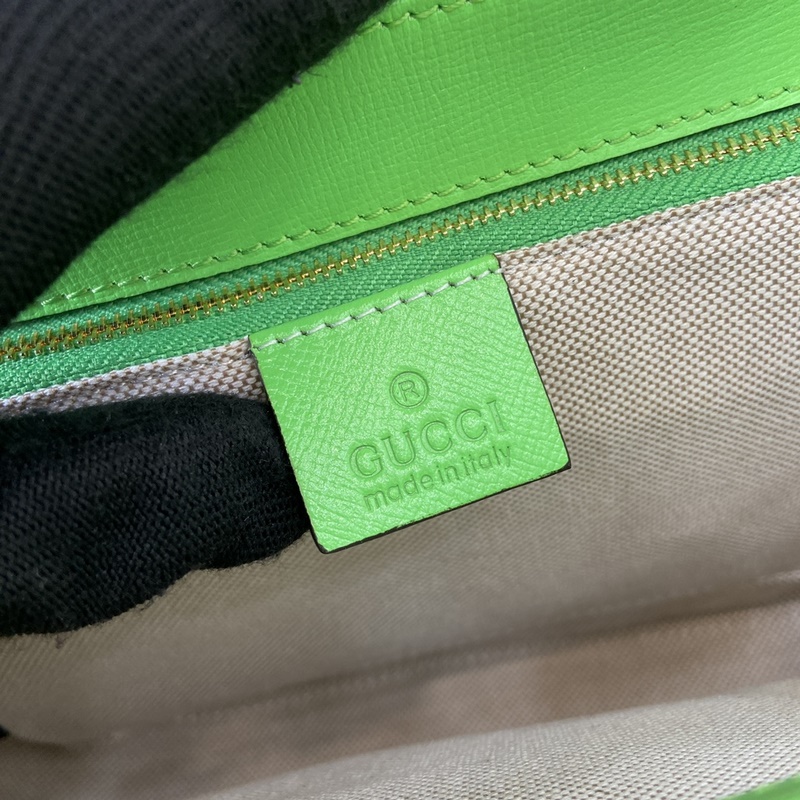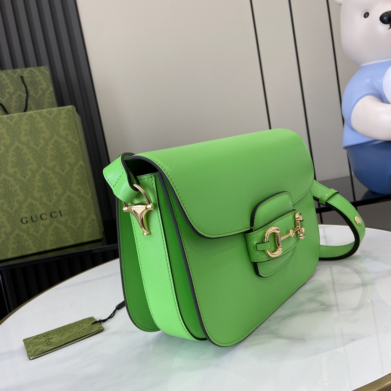 New Gucci Horsebit 1955 shoulder bag. The Gucci Horsebit 1955 shoulder bag made a stunning debut in the 2020 early spring series, interpreting the classic design from a new perspective. This handbag continues the lines and shape of the classic items from more than 60 years ago, cleverly combining classic details with modern spirit, and emphasizing the horsebit, the brand’s iconic design element. This design pattern composed of two elements, double rings and connecting strips inspired by the equestrian world, has become one of the brand’s dazzling iconic elements. On this small flap shoulder bag, this accessory contrasts with the textured green leather material, and is equipped with an adjustable shoulder strap, which can be freely converted between shoulder and crossbody. Items with multiple ways of wearing and styles are a welcome choice for all customers who have become part of the brand’s individual spirit. Green vintage-style textured leather, gold-tone hardware, microfiber lining, horsebit detail on the front, half horsebit detail on the sides, one storage pouch included with each bag, two extra button caps inside to cover exposed studs when the strap is extended, three gussets, one zippered pocket and one open pocket, adjustable shoulder strap drop: 25 to 45 cm, strap drop: 65 to 74 cm, flap closure, weight: approx. 0.84 kg.