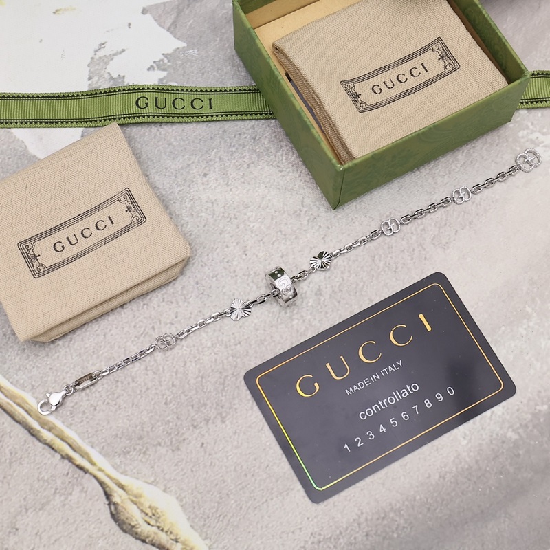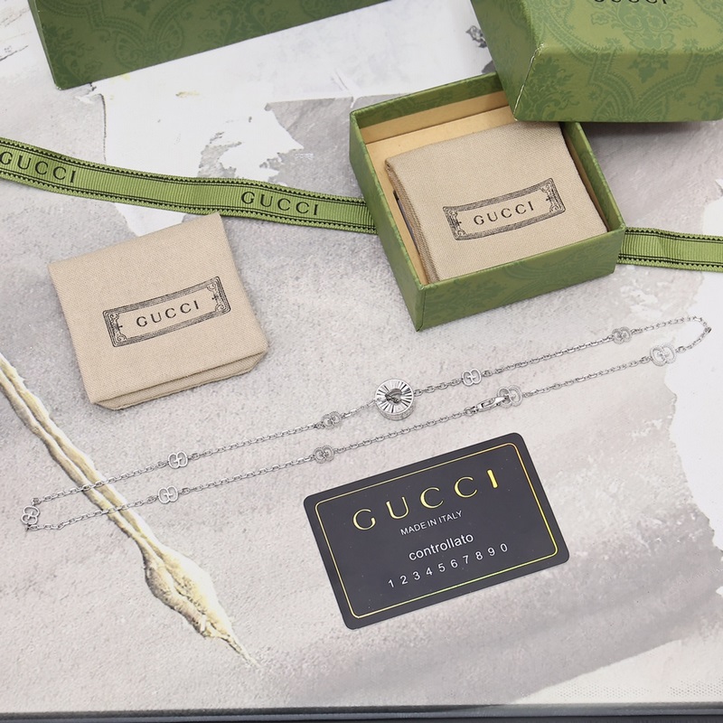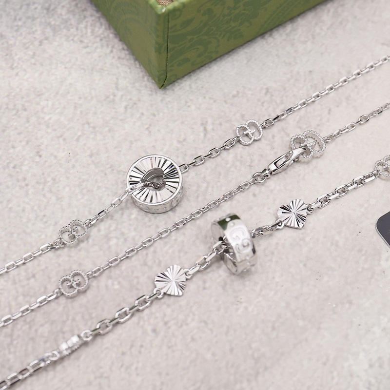 [Celebrity Style] GUCCI Icon Series 18K White Gold Heart Necklace Bracelet
