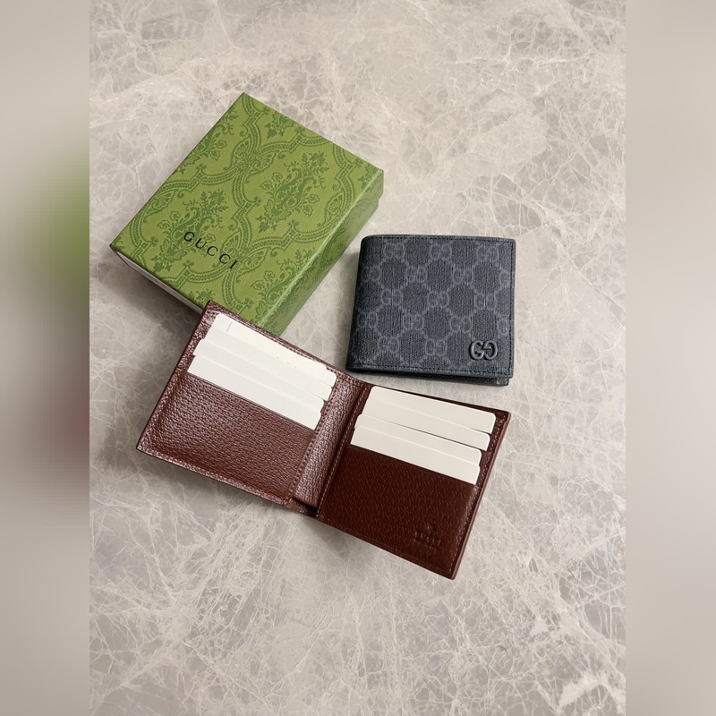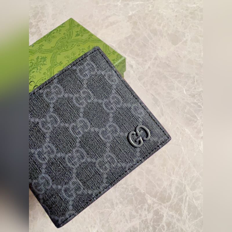 Gucci’s latest series presents ~ short wallets. The contrasting two-tone design makes the GG logo on the bag shine. The fabric is black GG, and the lining is made of contrasting cowhide. Black GG Supreme canvas with dark gray ceramic effect double G, size: 11x 9cm