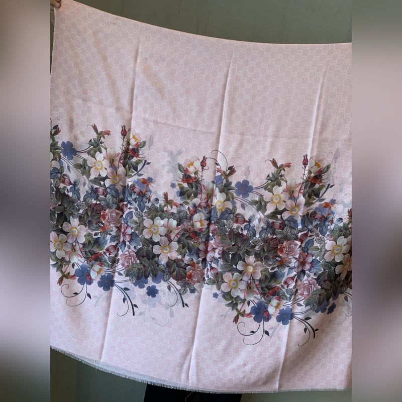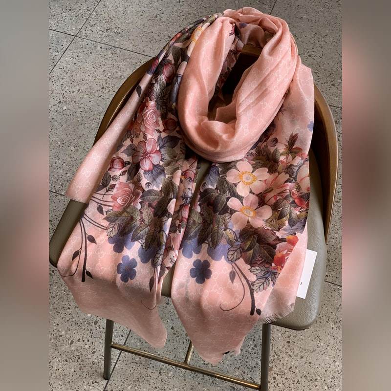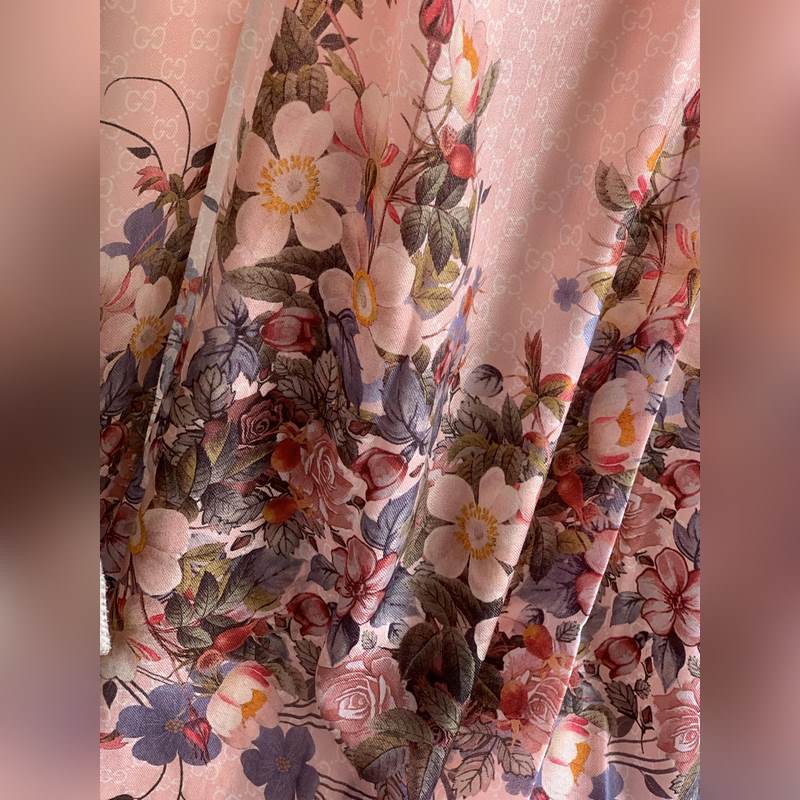 Beautiful and smart, too beautiful. I love the effect of wearing it. Gucci New~300 high-end ring velvet is really beautiful. The floral element is really high-end, steady, elegant and feminine. The four colors are also very suitable for daily wear. The real thing is very beautiful. Baby cashmere high-end cashmere, soft fabric, fine printing and dyeing, texture easily passes through the silk scarf buckle, high-end quality, light and comfortable. You must have one in the air-conditioned room when traveling in summer. It is more beautiful in winter. If you are slow, you will miss it. 110*200 top imported 300 pure cashmere ring velvet long scarf, four colors.