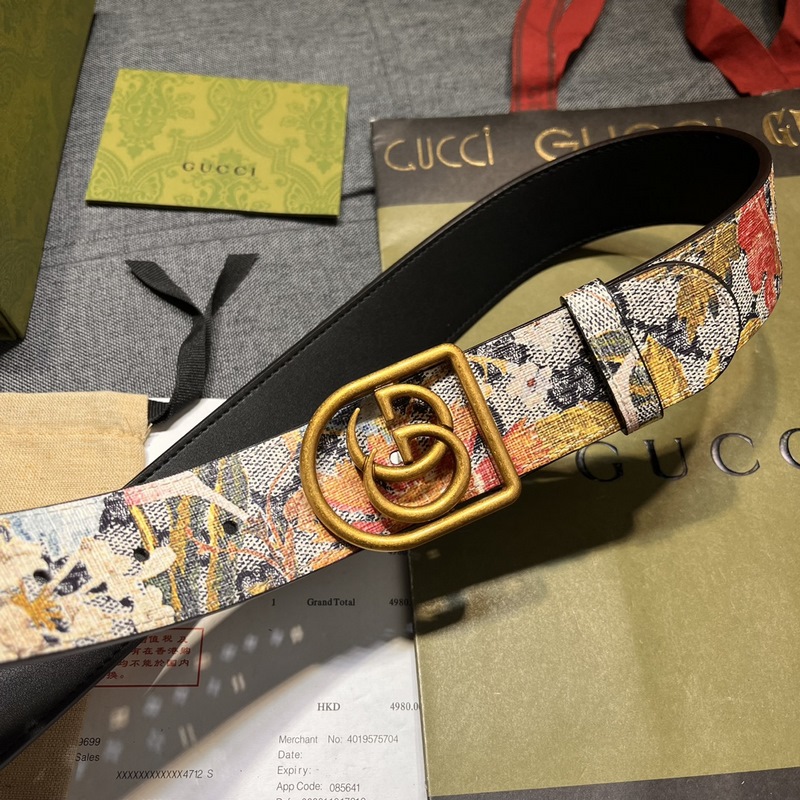 Gucci New Connecting the past and present, this classic is reinterpreted in a new way. This black leather belt features the GG monogram and a rectangular buckle closure with Gucci engraving.