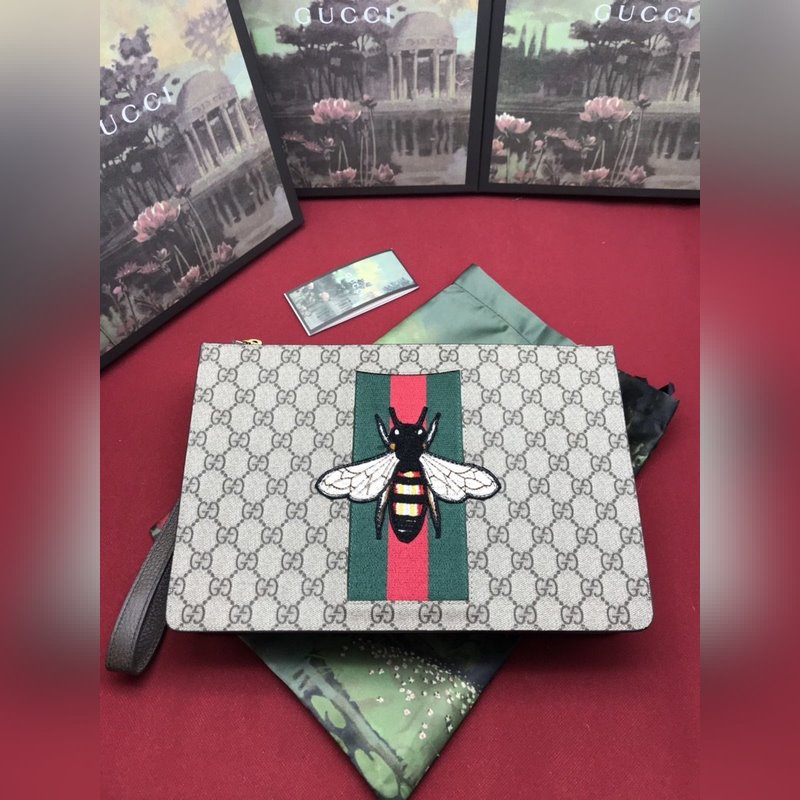 Exclusively customized PVC fabric pig grain leather with bee embroidery. Size 30x20x4cm