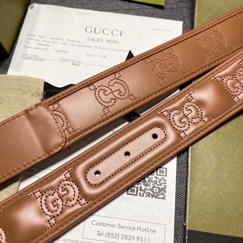 Gucci Width 4.0cm New Original Every season, the brand’s logo is renewed and reinterpreted. The classic GG logo is vividly presented on this quilted leather belt, complementing the double G shape accessories. This GG Marmont series belt is made of top-grain leather