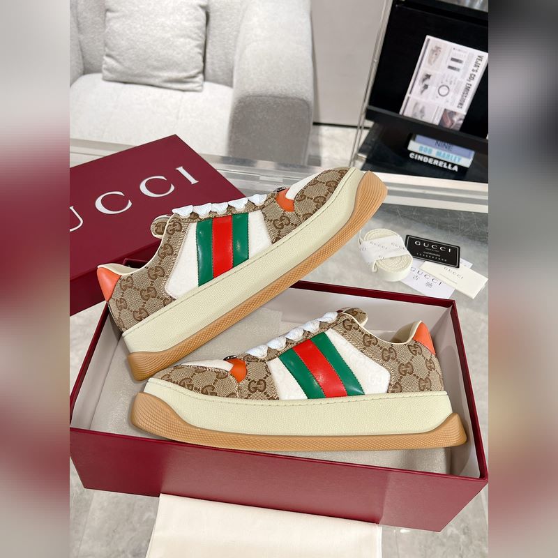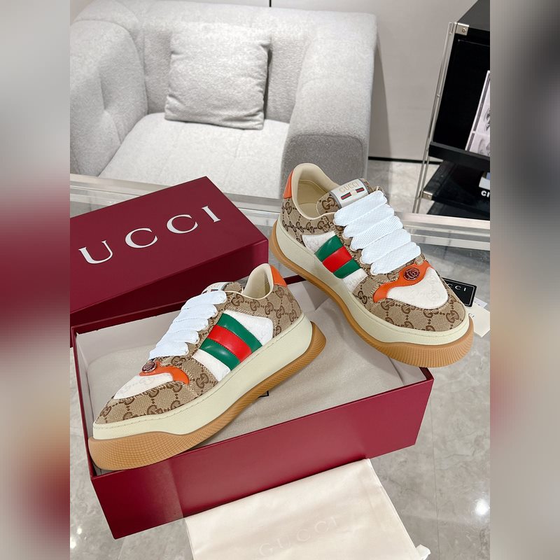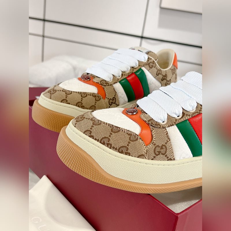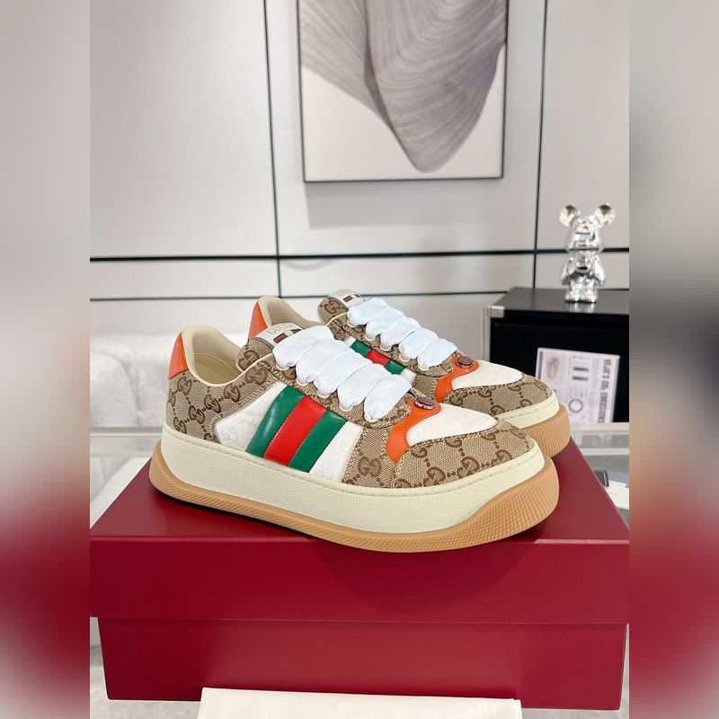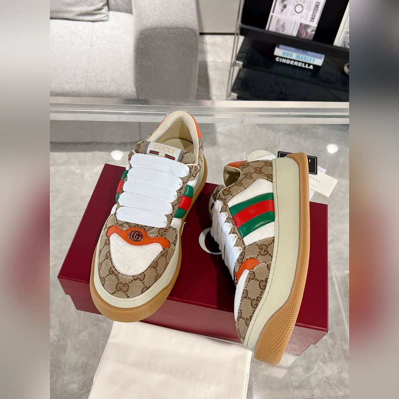 Couples’ Gucci new Screener series webbing thick-soled sneakers, the latest thick-soled dirty shoes ~~ Couples’ casual shoes, 6cm height-increasing shoes ~~