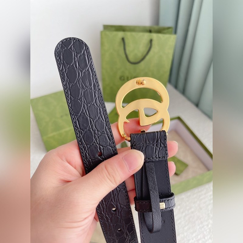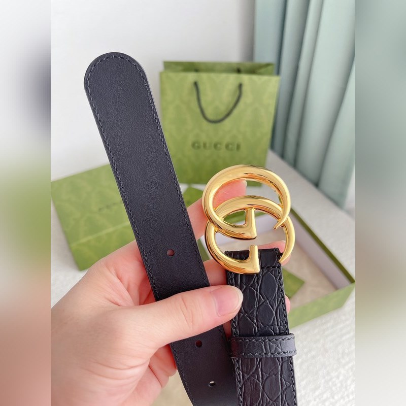 Gucci shiny double G buckle crocodile pattern belt