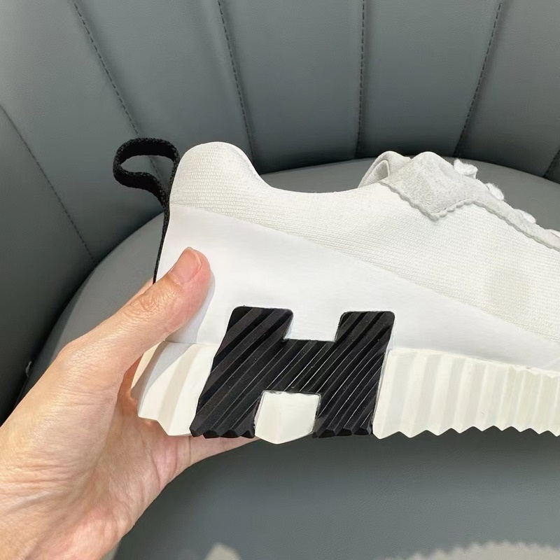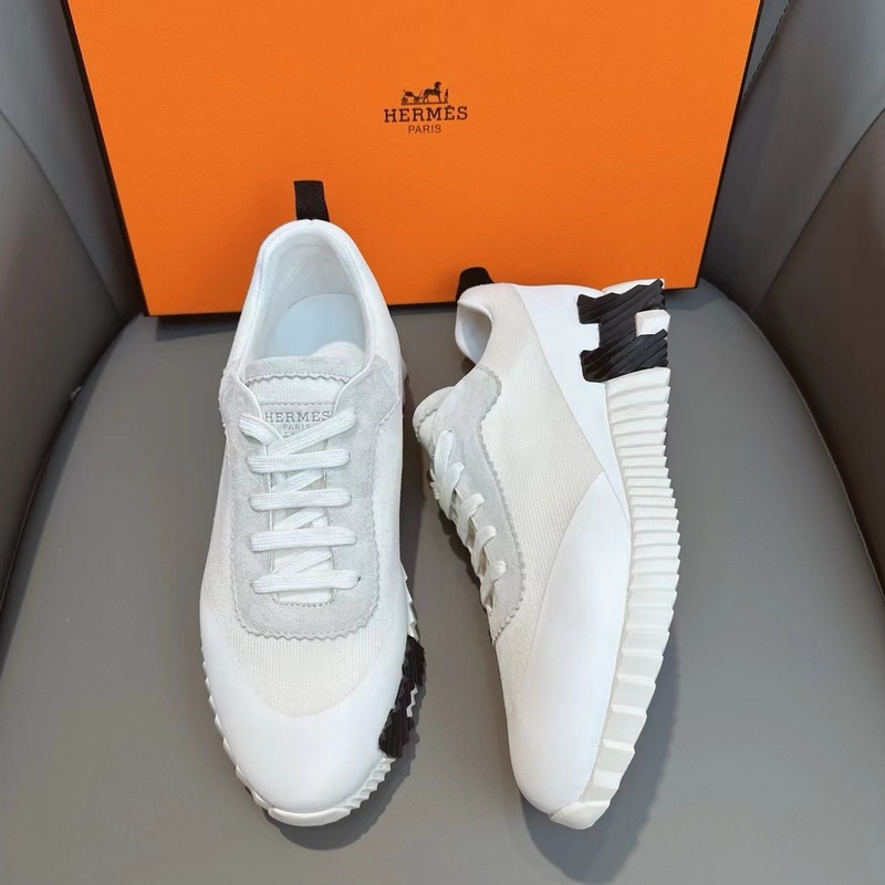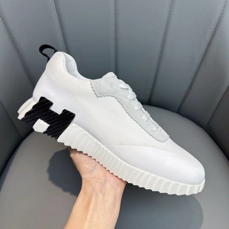 H Hermès Bouncing sneakers, men’s casual sneakers, upper calfskin and suede goat leather spliced ​​with high-end mesh, imported materials, full of texture, lightweight sole decorated with contrasting patterns, creating a versatile fashion style.