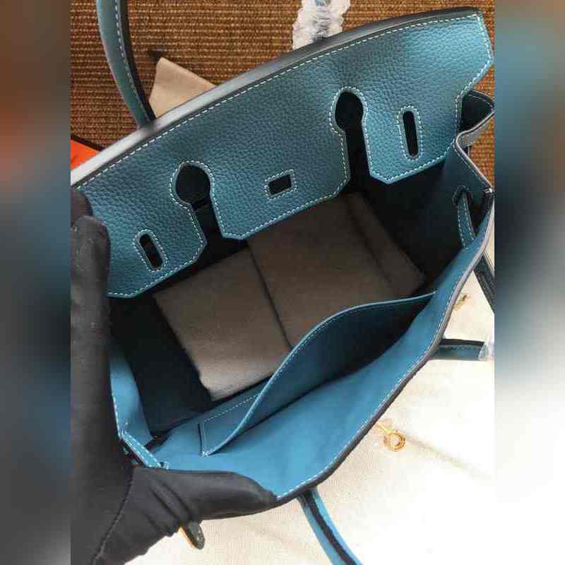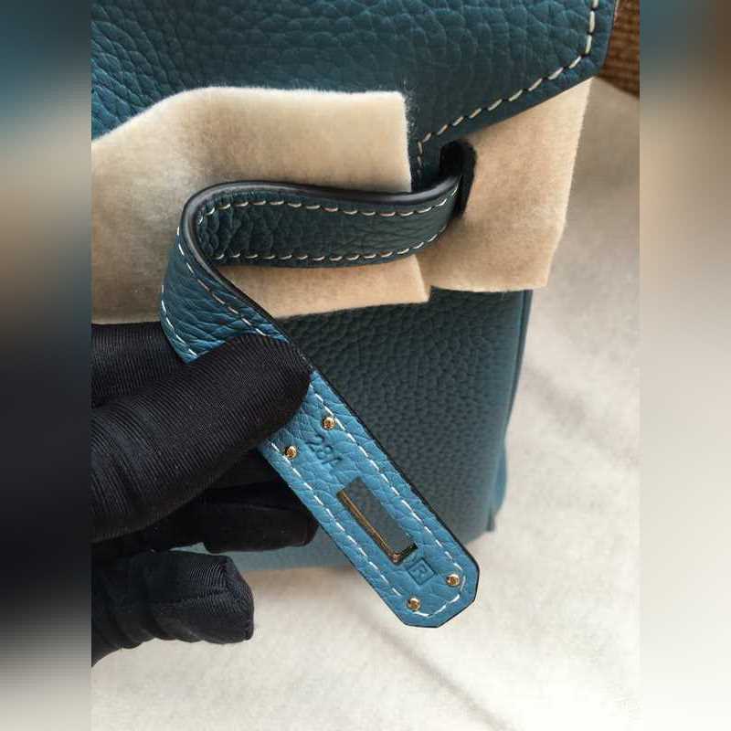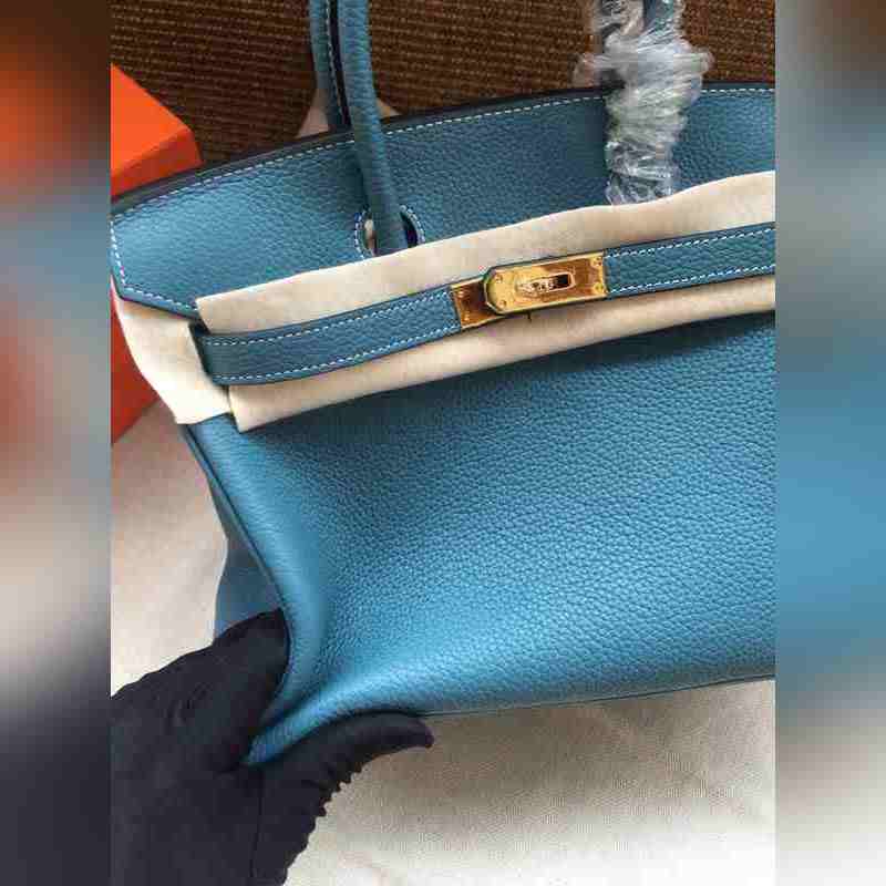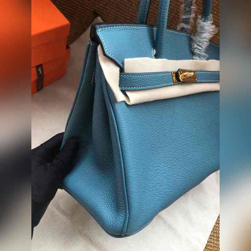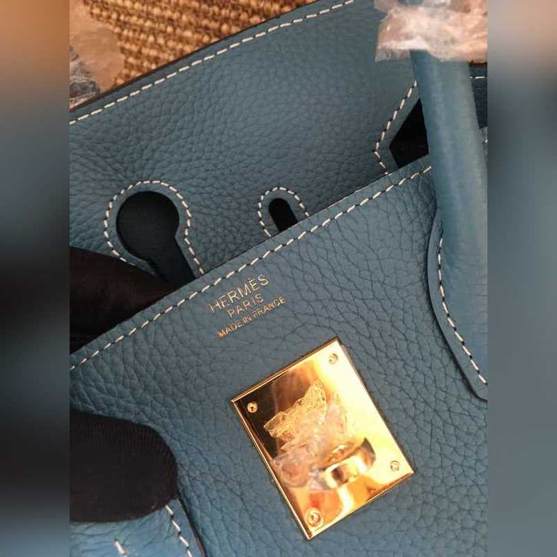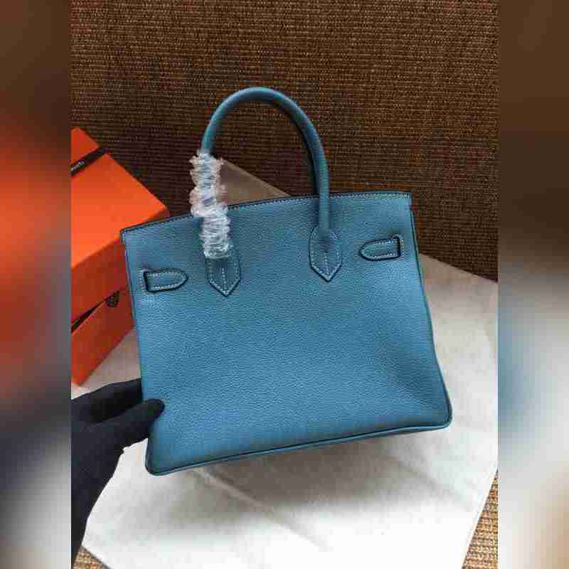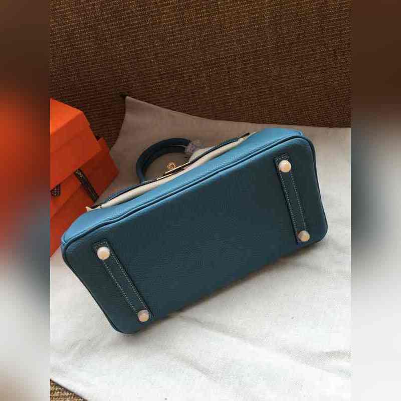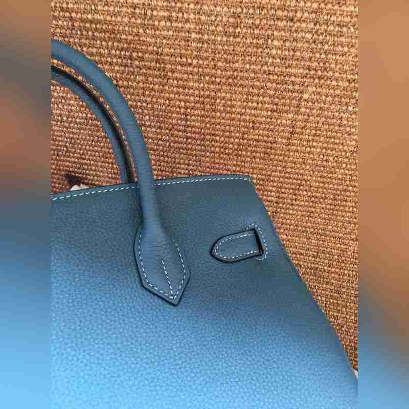 Hermes Platinum 25, 30 Handbag Denim Blue Gold and Silver Buckle