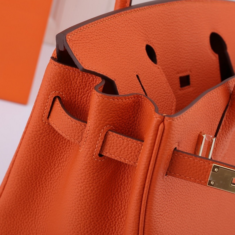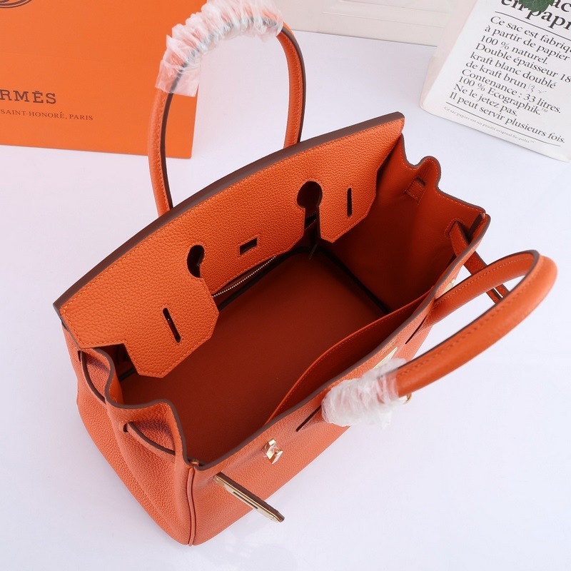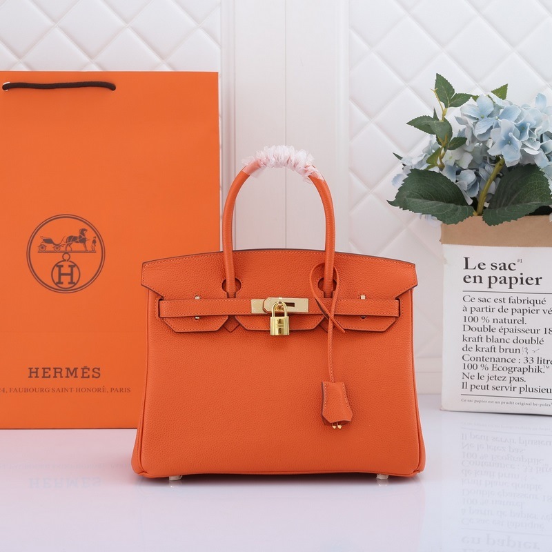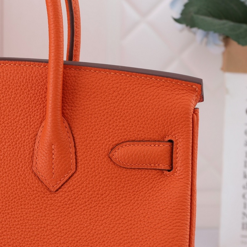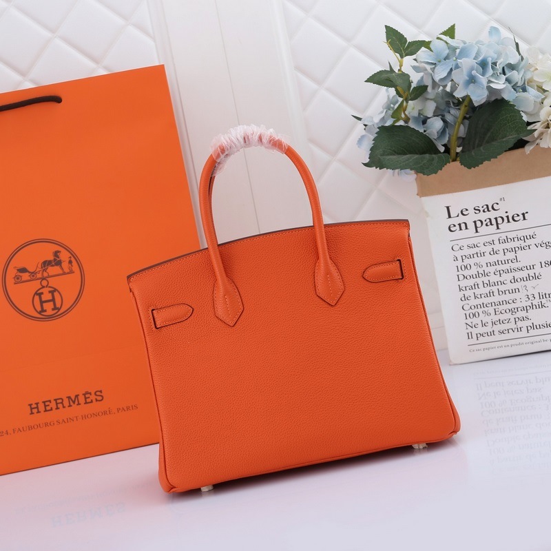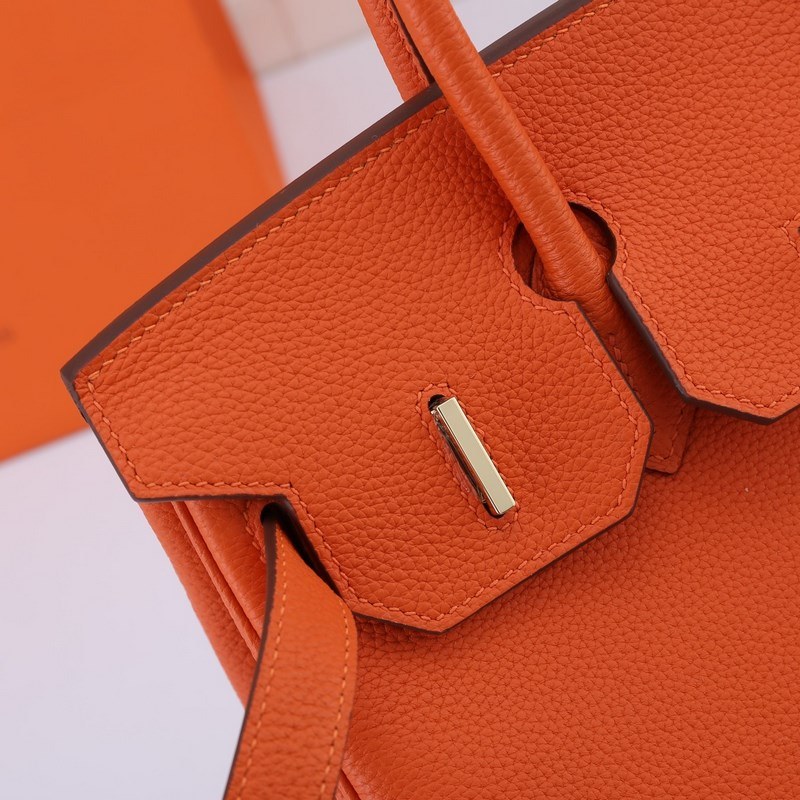 Hermes Birkin handbag orange with gold and silver buckles