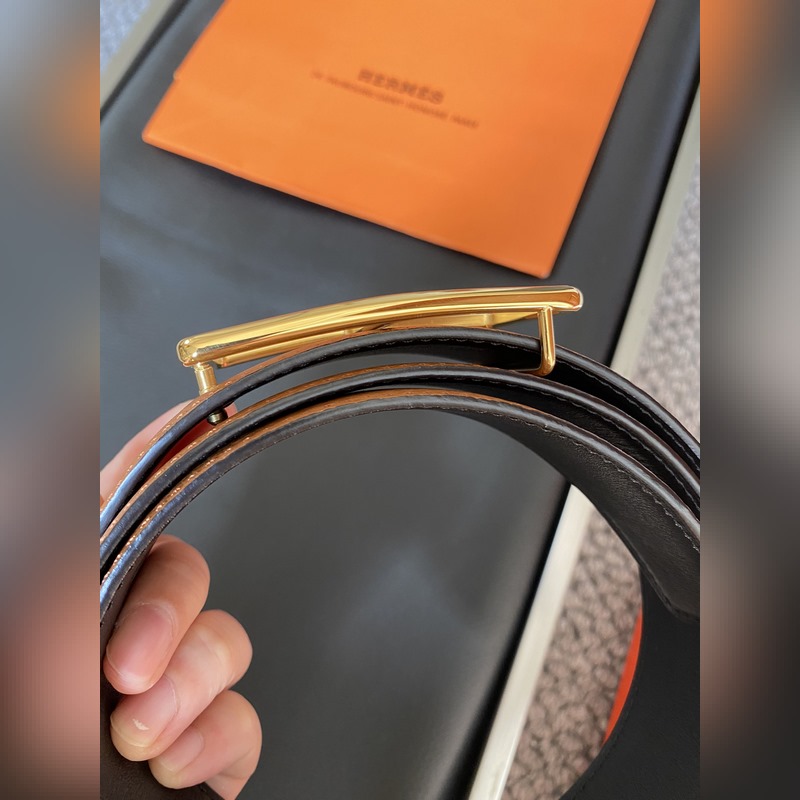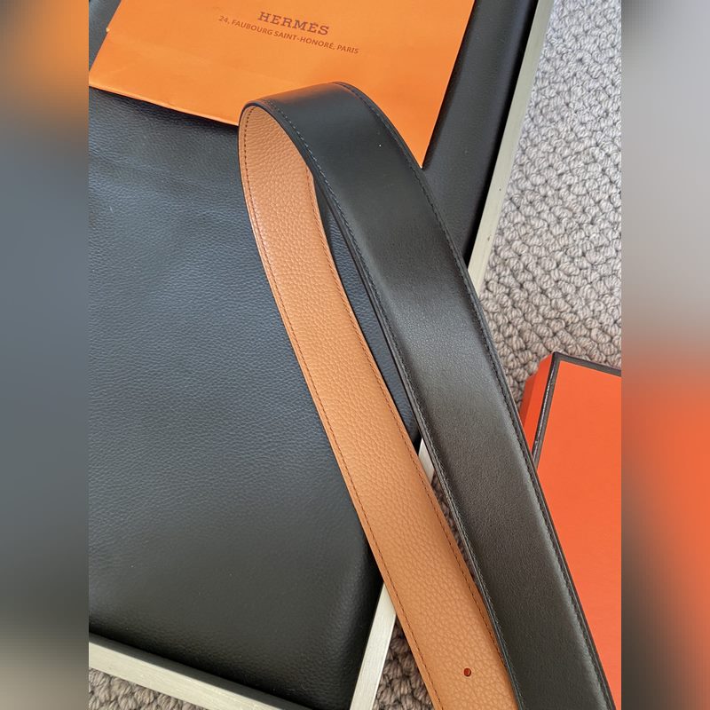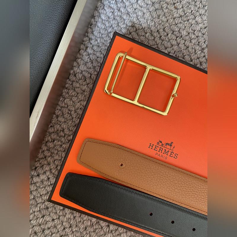 Hermès Hermēs Box/Togo calfskin reversible belt, palladium-plated buckle. 38mm
