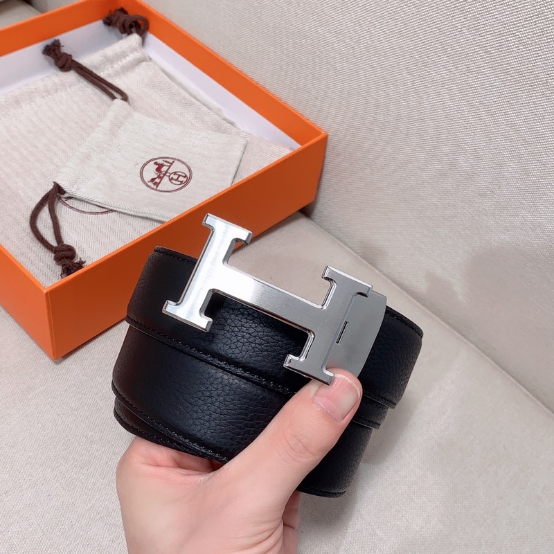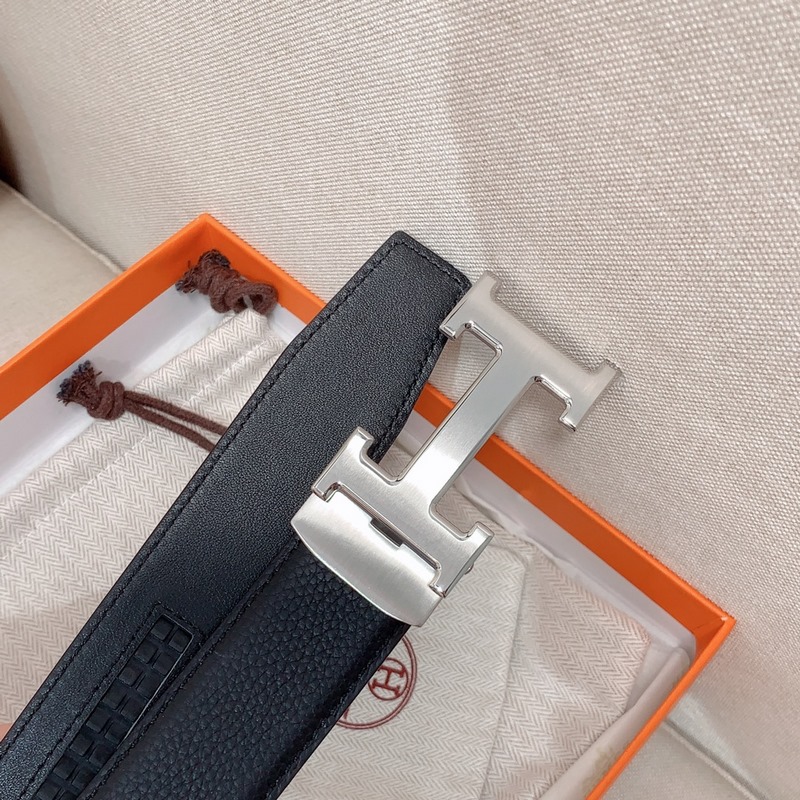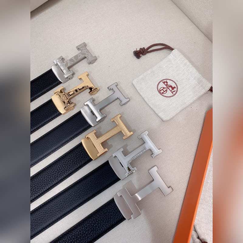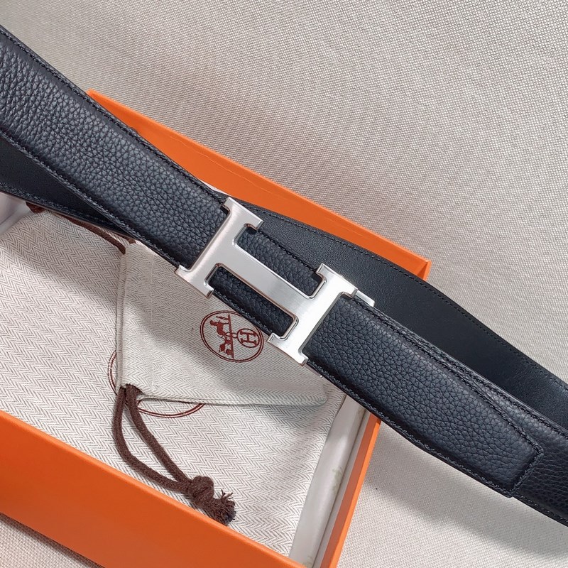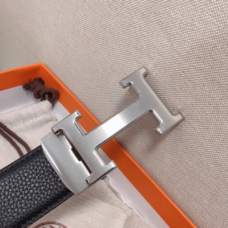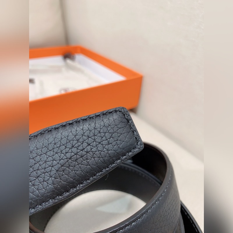 Hermès Automatic Clemence calf leather men’s belt with palladium-plated buckle and H detail 3.5cm,