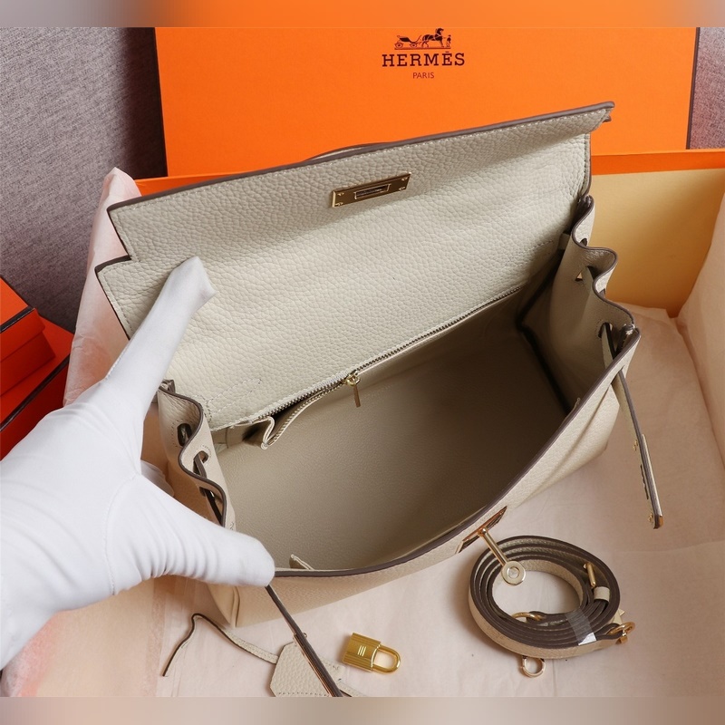 Hermès Kelly Princess Replica Bag with Milk White Gold Hardware