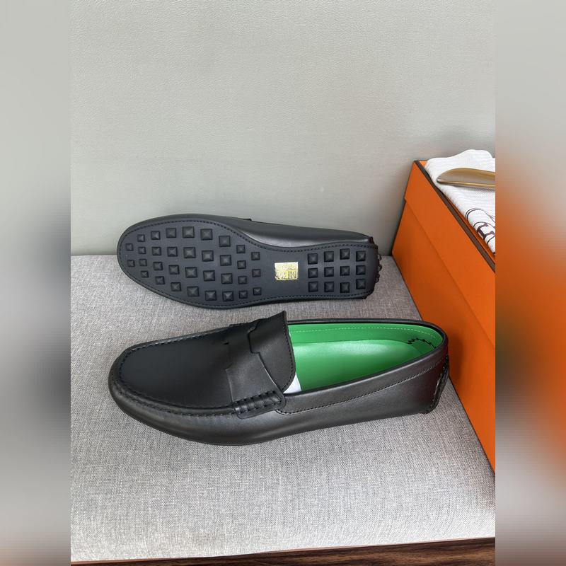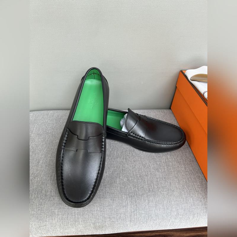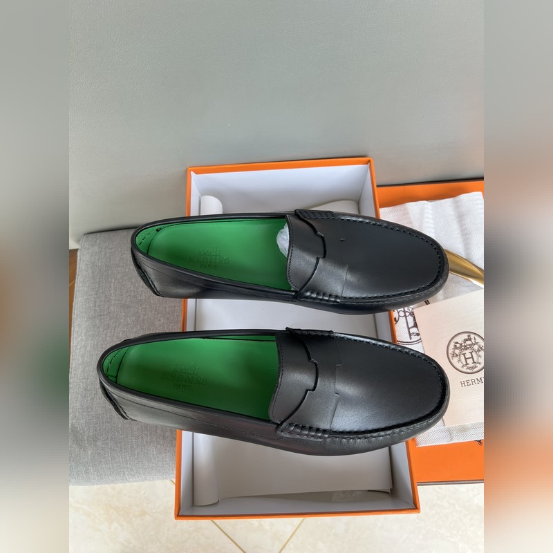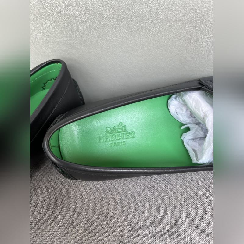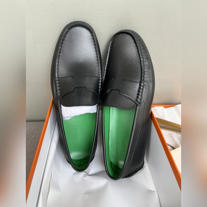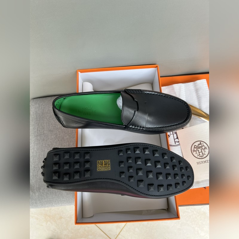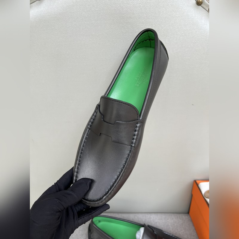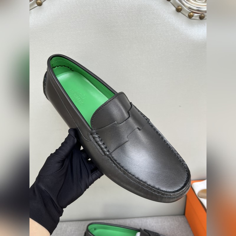 Original quality, new Hermes Hermes handmade driving shoes for men, moccasins, slip-on shoes, loafers, exquisite hand-stitching, workmanship details comparable to the counter, original rubber outsole, Italian imported leather embryo color-changing cowhide, green water-dyed cowhide lining, sweat-absorbing and deodorizing black, 39-44 in stock (38, 45 custom-made, no return or exchange)