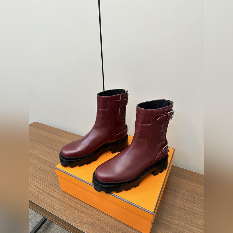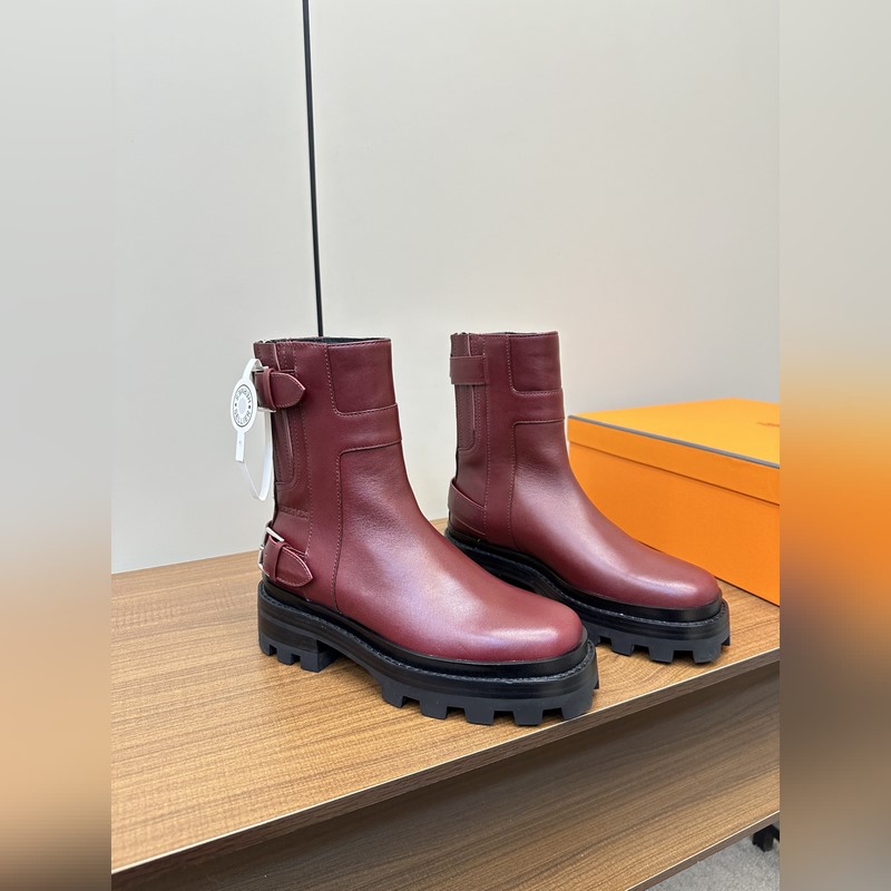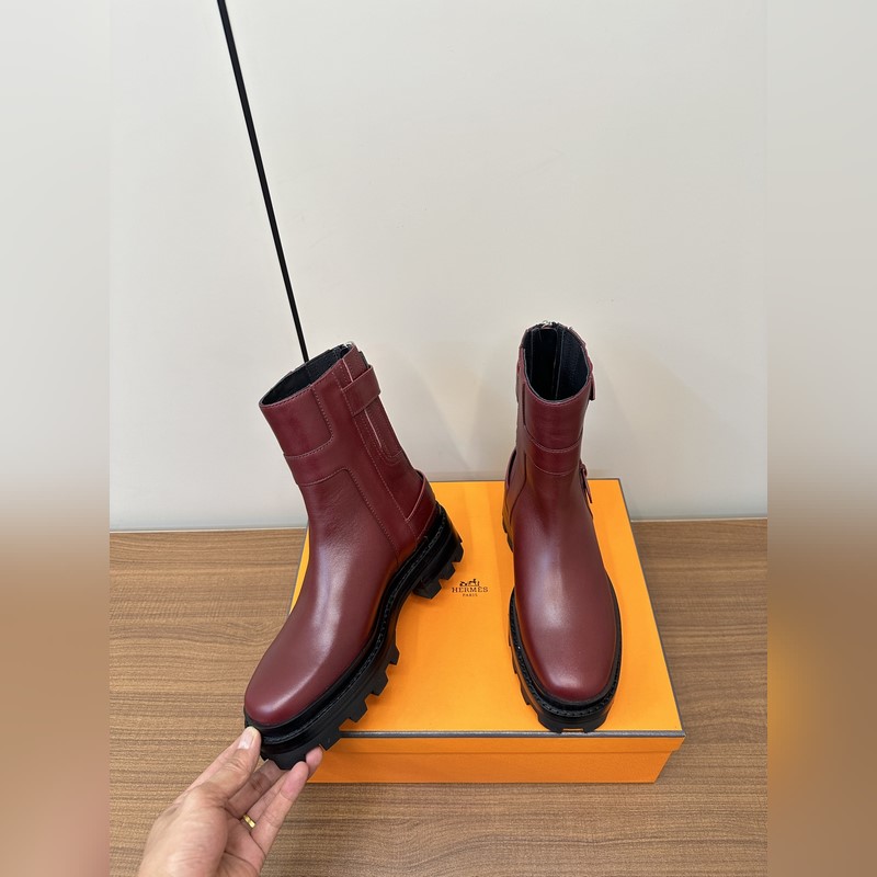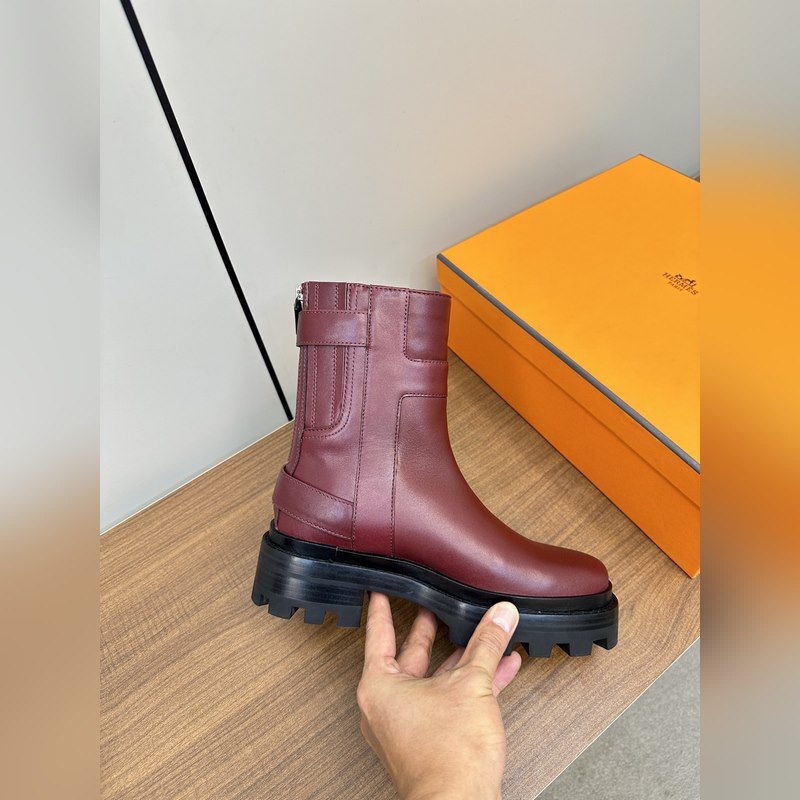 Hermes H’s new Hermes rear zipper high-heeled ankle boots motorcycle short boots